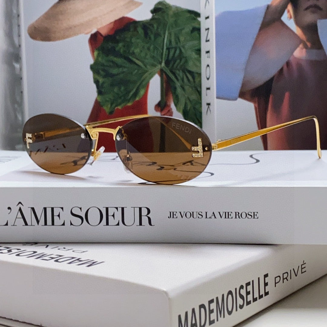 FIRST CRYSTAL RIMLESS OVAL FRAME SUNGLASSES 557152 IN METAL