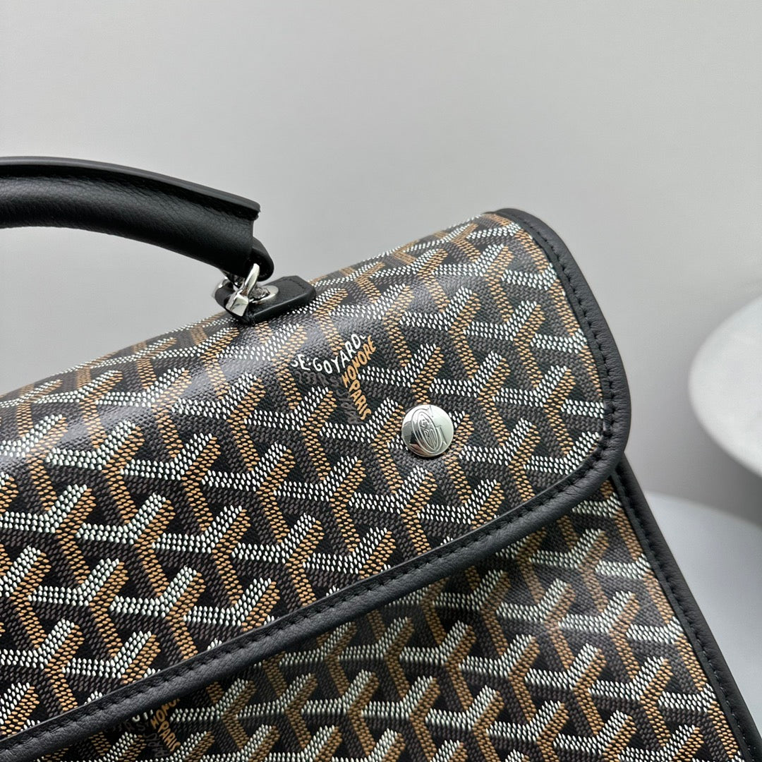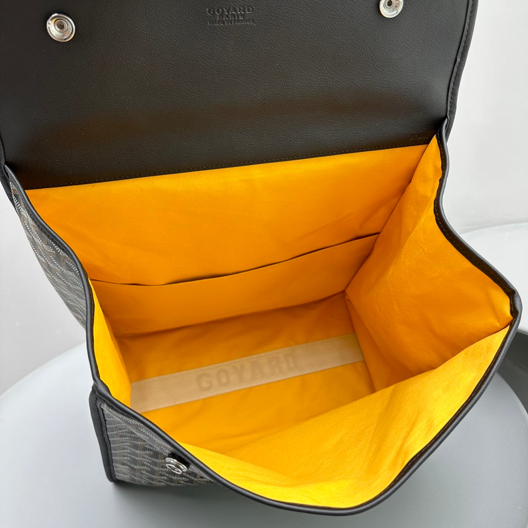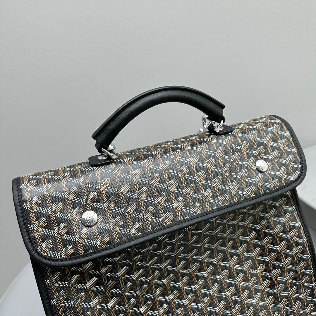 LEGER BACKPACK 37 IN BLACK GOYARDINE CANVAS WITH CALFSKIN TRIM
