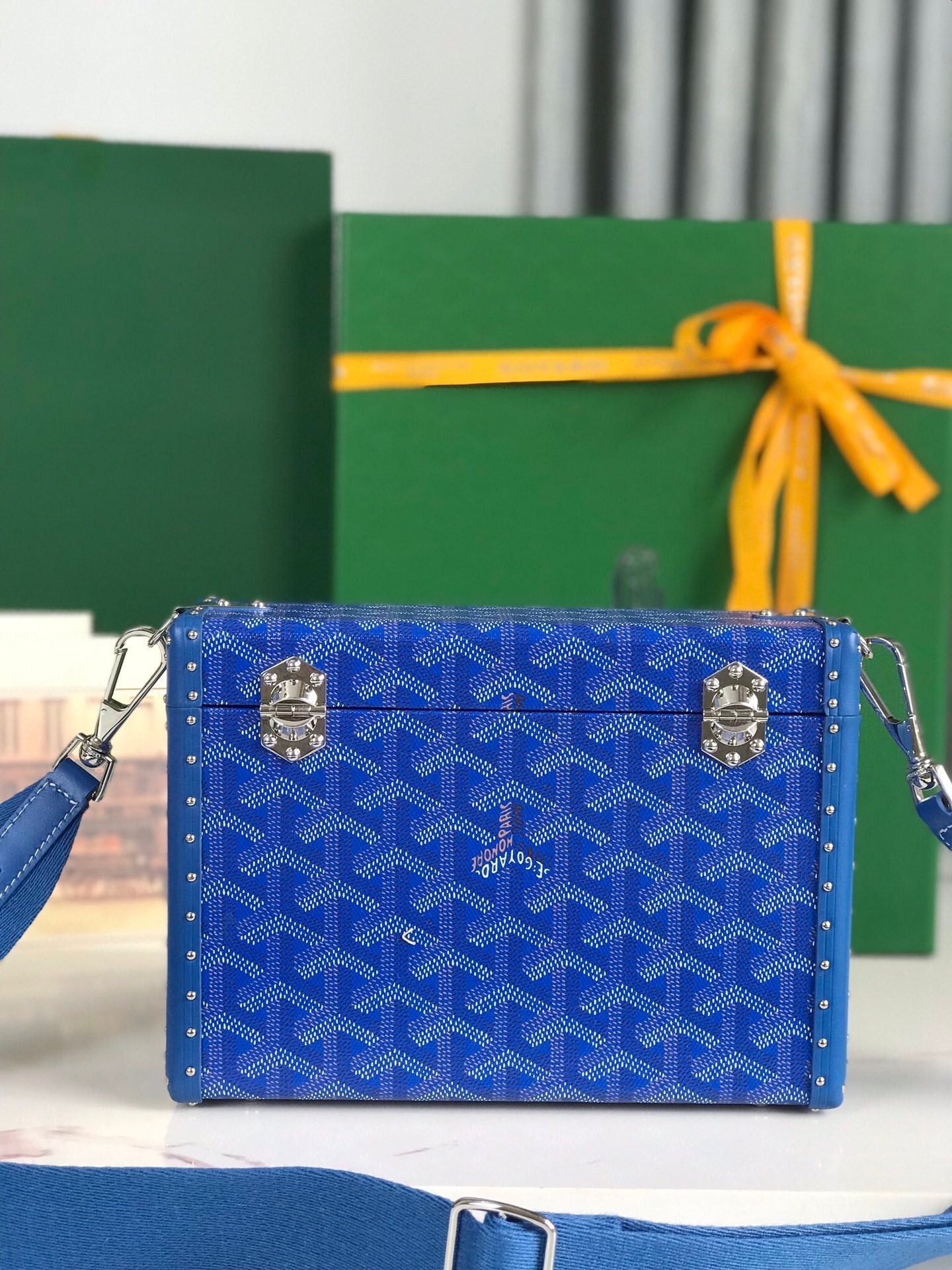 CASSETTE TRUNK BAG 21 IN BLUE GOYARDINE CANVAS & CLAMECY COWHIDE
