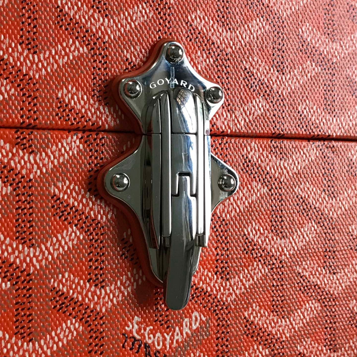 CASSETTE TRUNK BAG 21 IN RED GOYARDINE CANVAS & CLAMECY COWHIDE