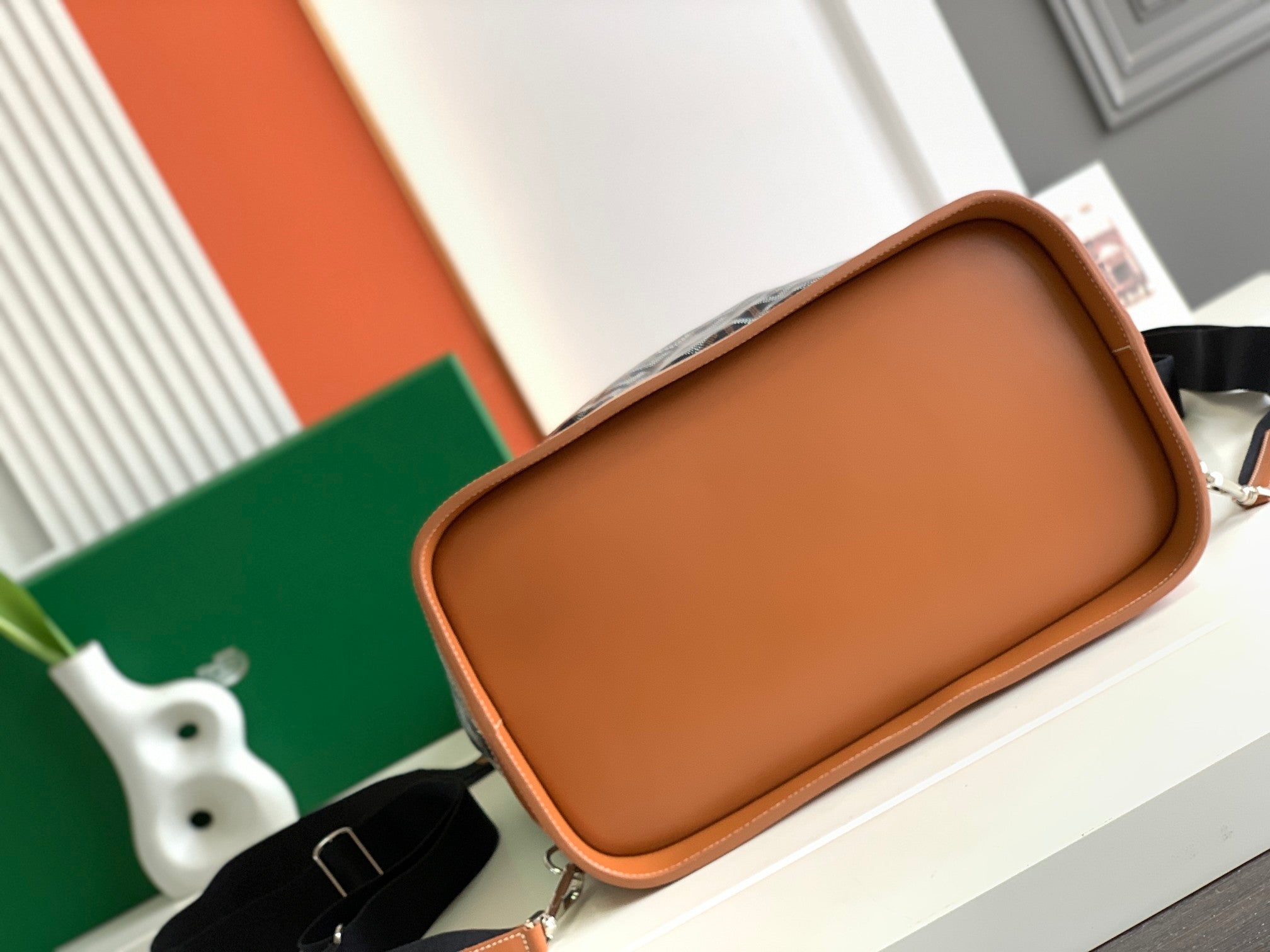 GOYA STEAMER PM BAG 48CM BLACK AND TAN CANVAS