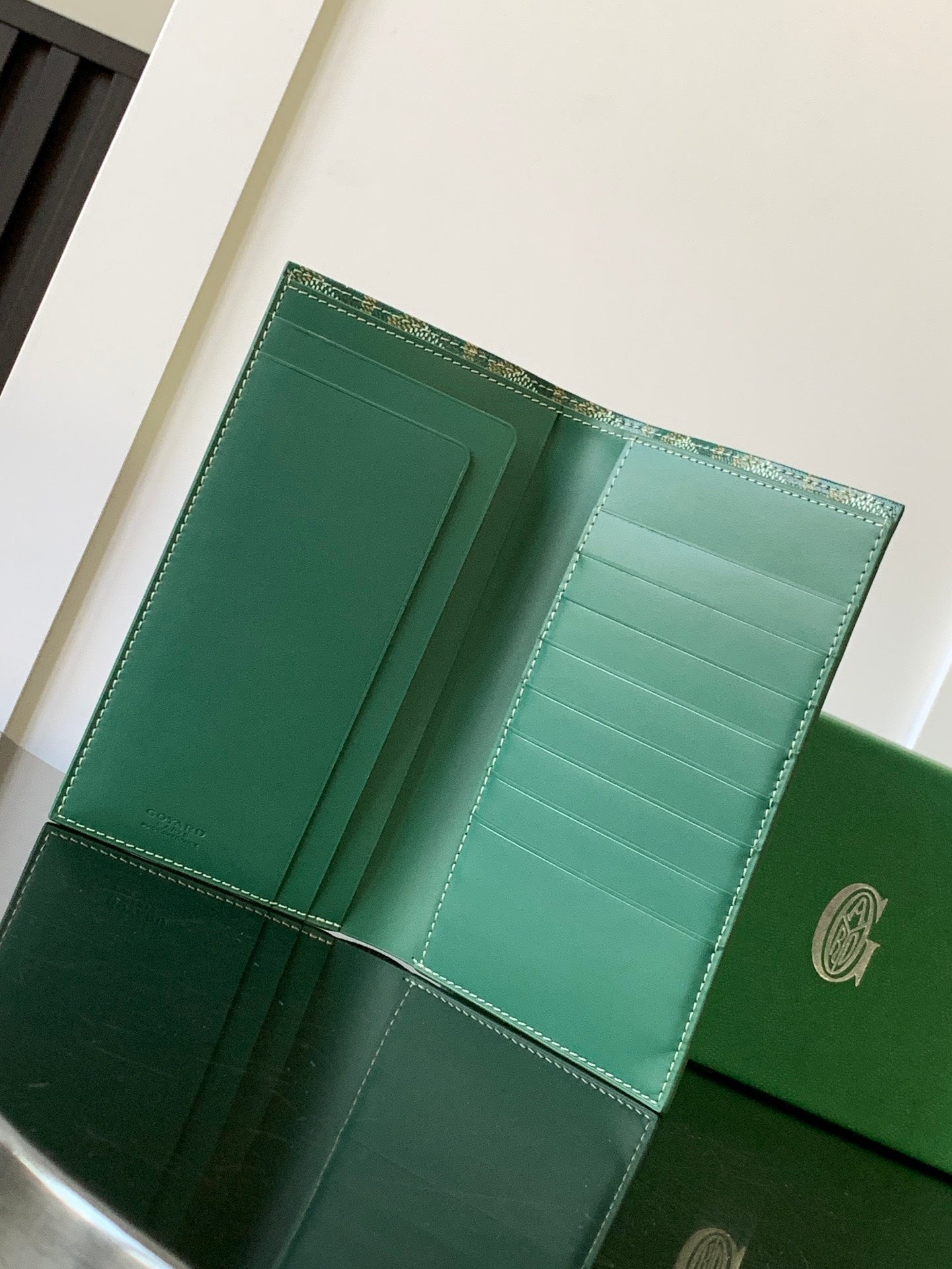 RICHELIEU CHECKBOOK WALLET 19 IN GREEN GOYARDINE CANVAS AND CALFSKIN