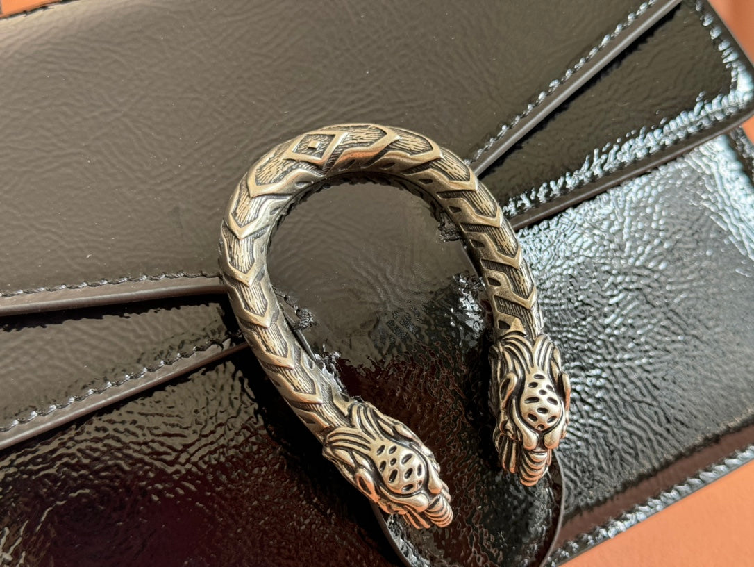 DIONYSUS MEDIUM SHOULDER BAG 22 IN BLACK GG GLOSSY LAMBSKIN