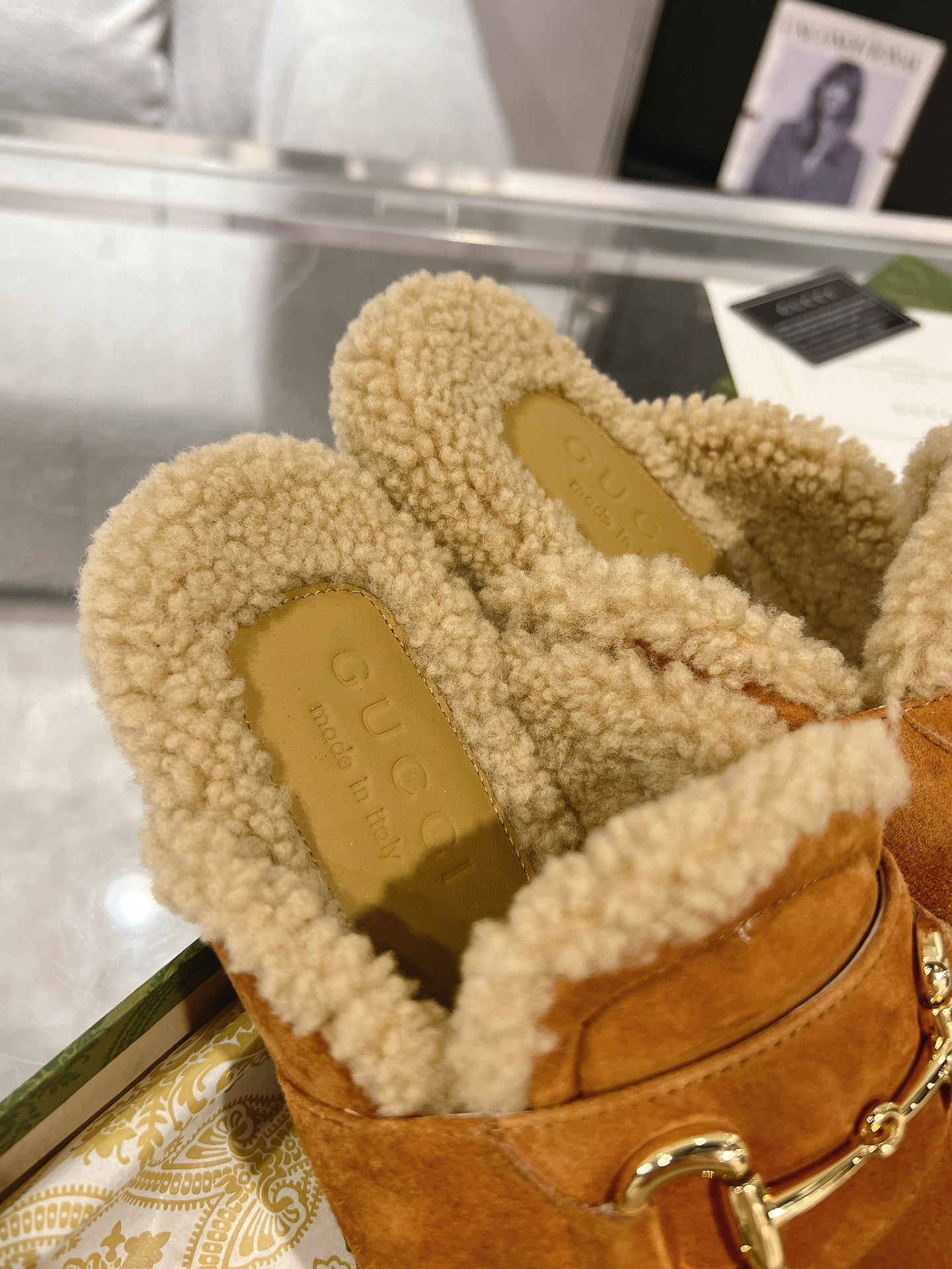 HORSEBIT MULE IN BRONZE ORANGE SUEDE AND FLEECE LINING