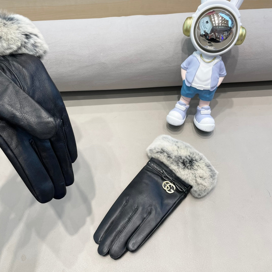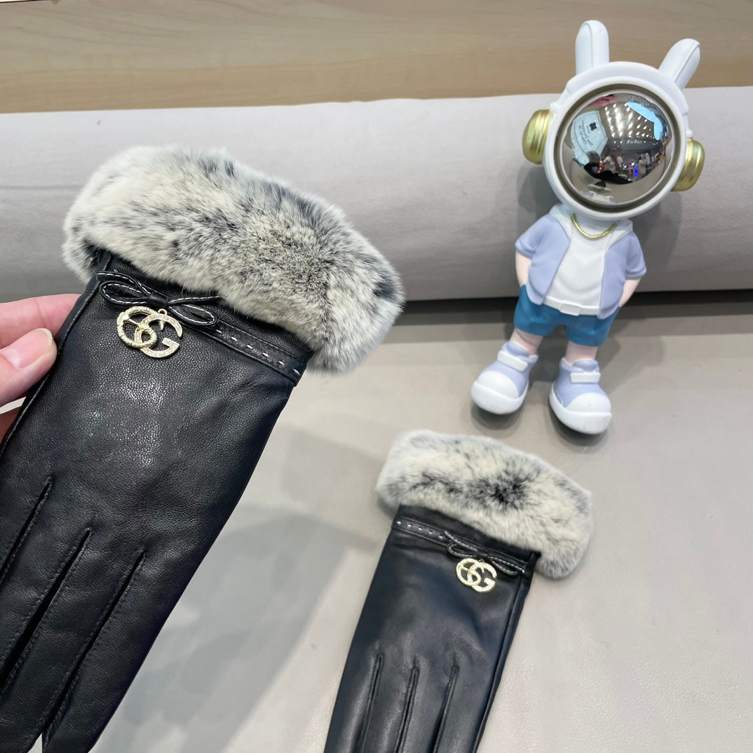 FUR-TRIMMED LAMBSKIN GLOVES BLACK WITH BOW 456265