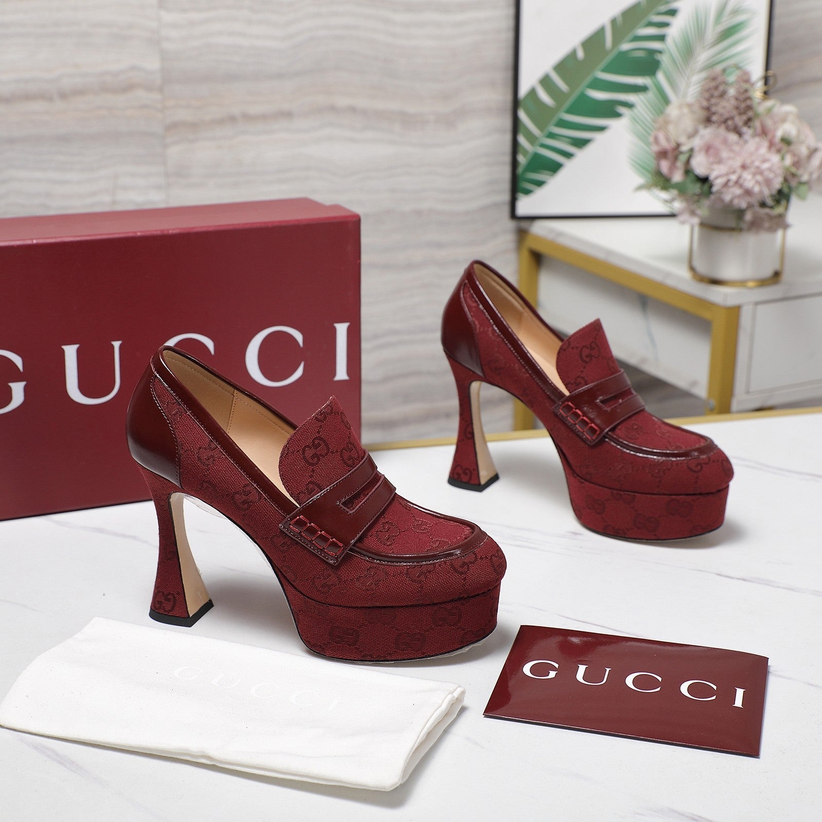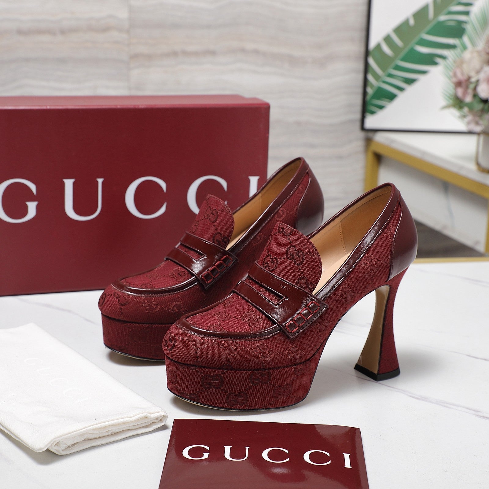 GG CLASSIC HIGH HEELS 110 IN DARK RED WITH LOGO PRINT