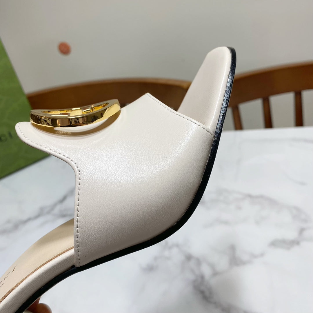 GG HIGH HEELS BLONDIE 75 IN CREAM WHITE LAMBSKIN WITH GOLD HARDWARE