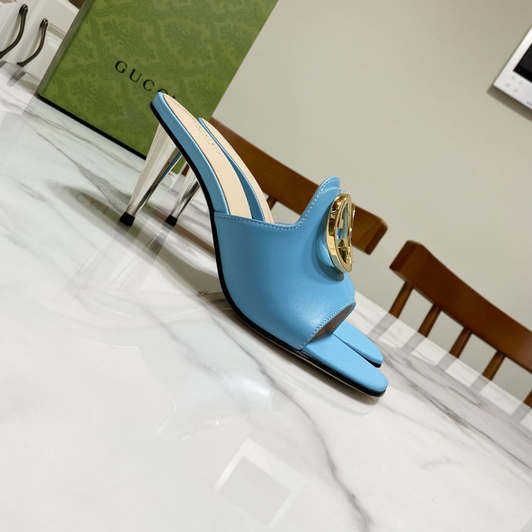 GG HIGH HEELS BLONDIE 75 IN SKY BLUE LAMBSKIN WITH GOLD HARDWARE