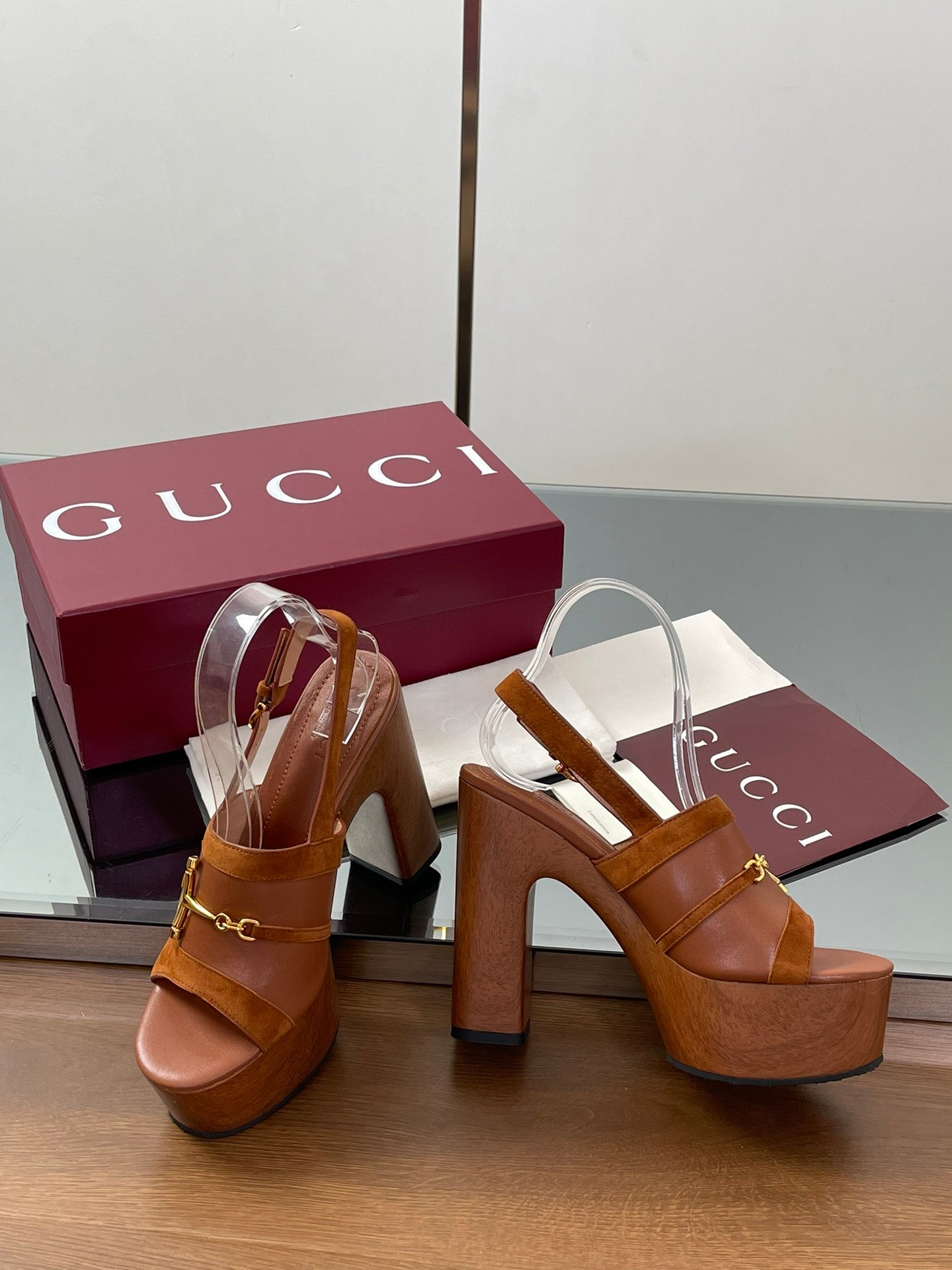 HIGH HEEL SANDALS 13 CM IN BROWN CALFSKIN MIX SUEDUE GOLD HARDWARE