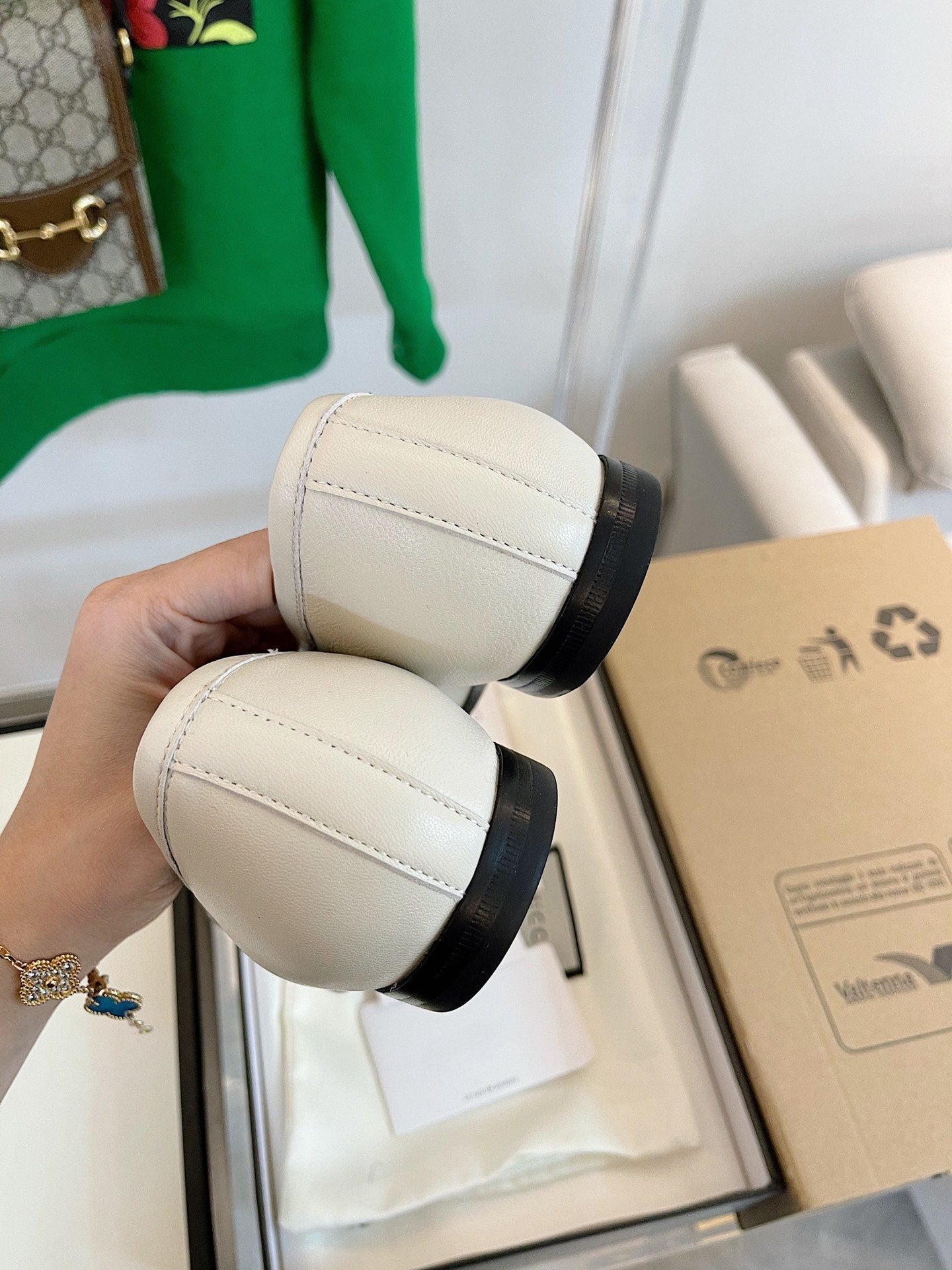 GG LOAFERS MULES WHITE BROWN SOLE