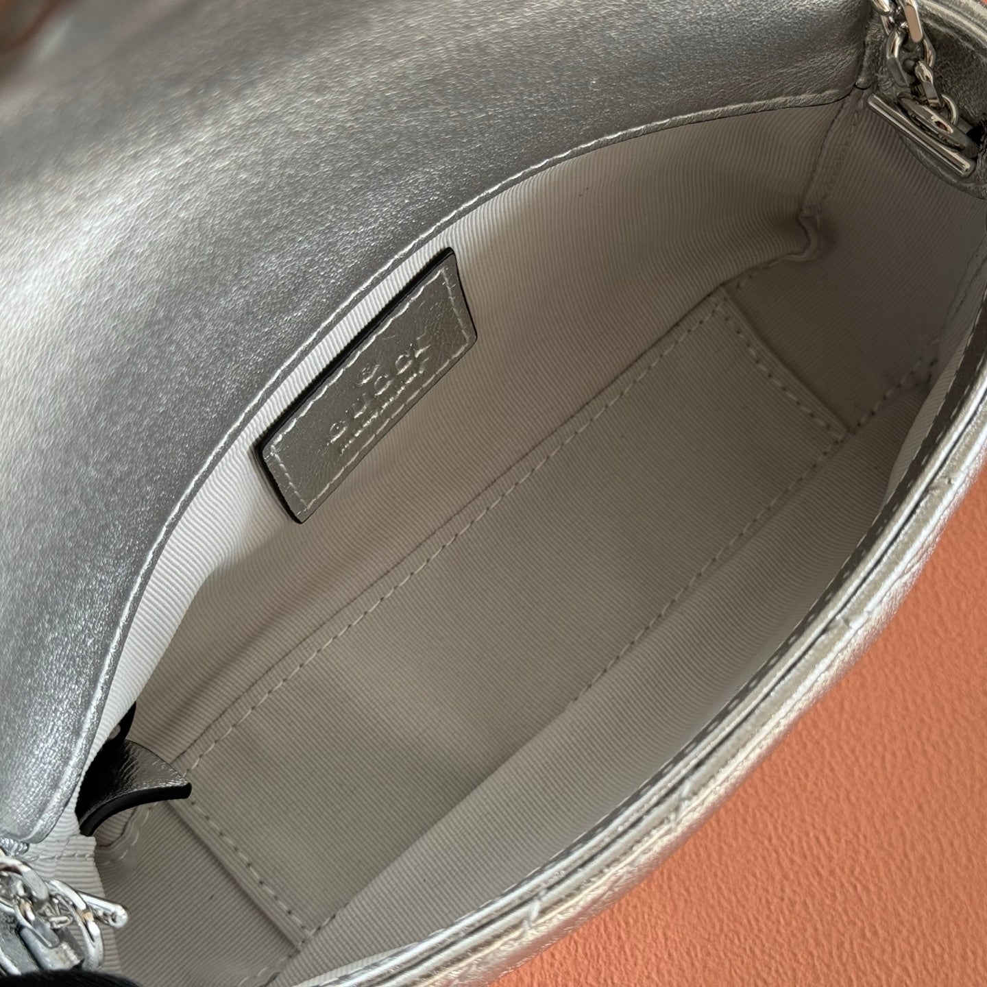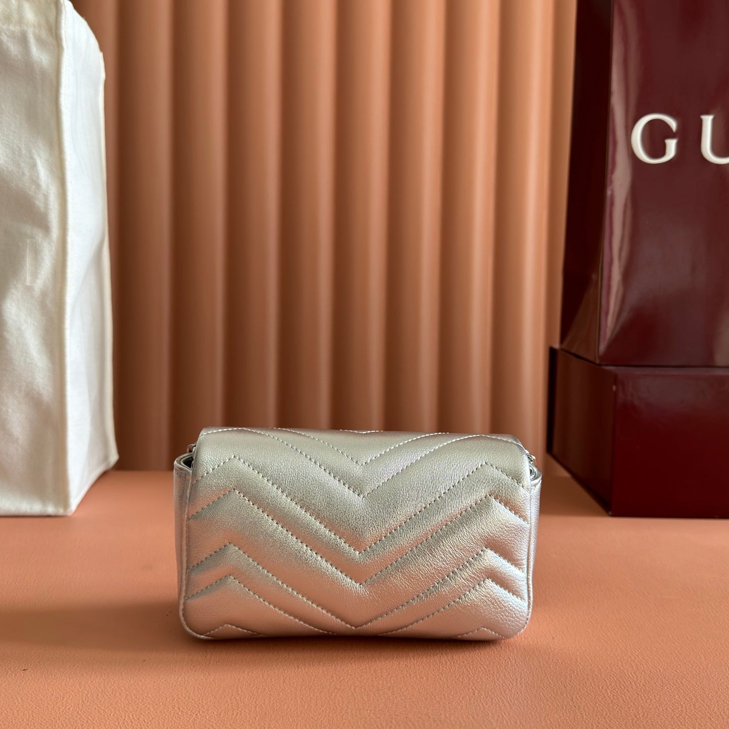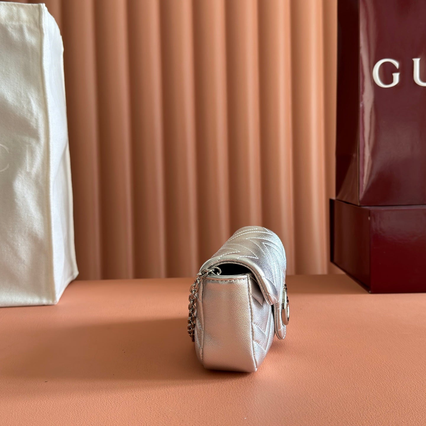 GUCCI 26S GG MARMONT BAG 16 IN SILVER LAMBSKIN