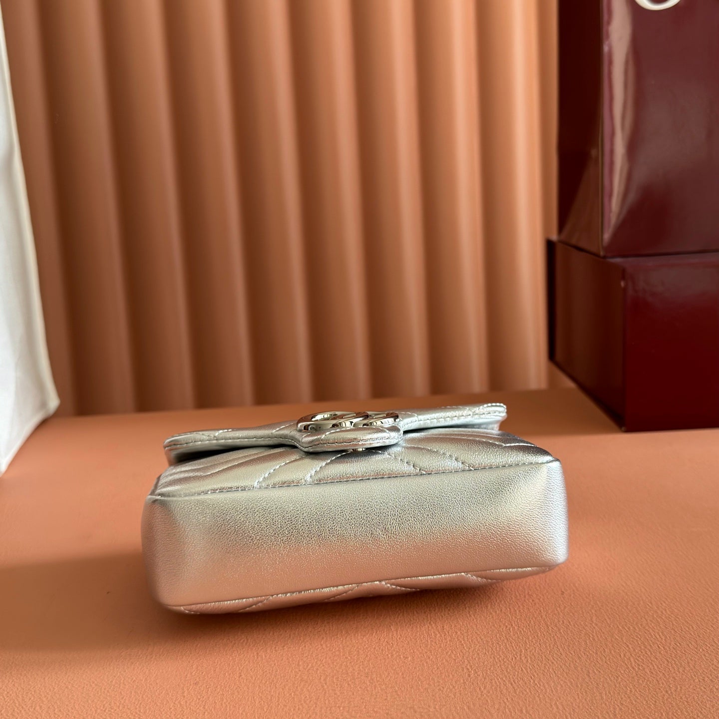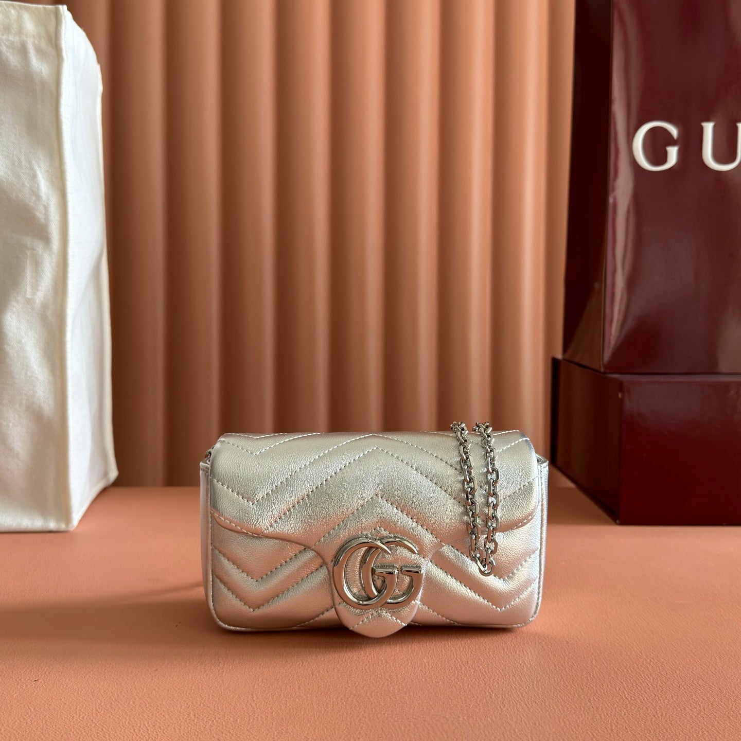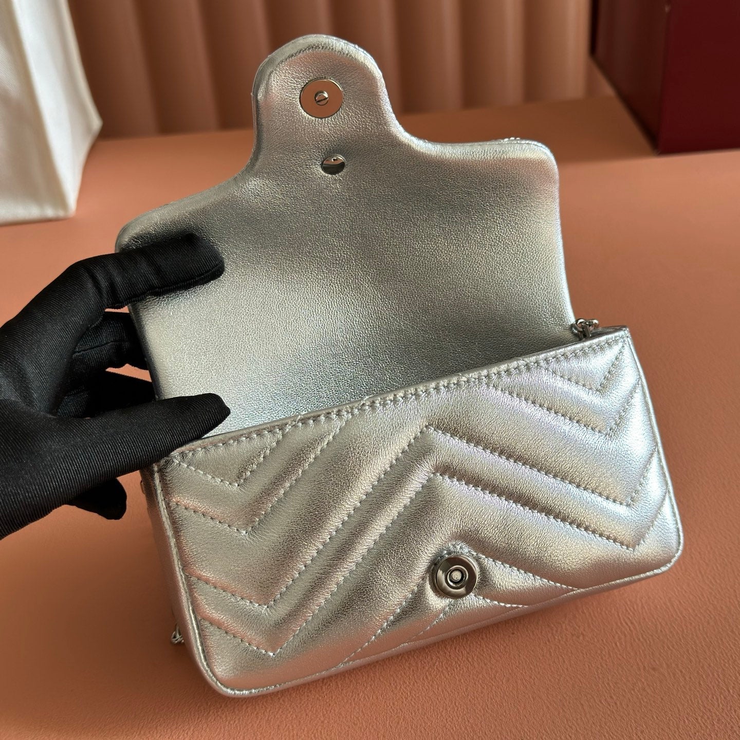 GUCCI 26S GG MARMONT BAG 16 IN SILVER LAMBSKIN