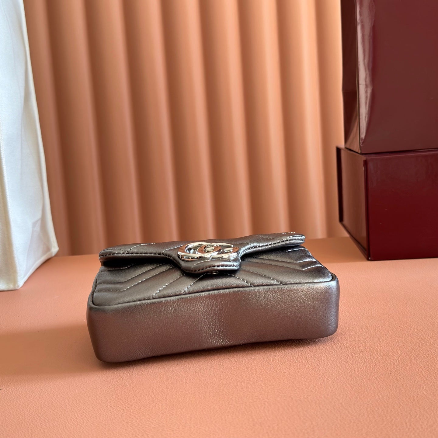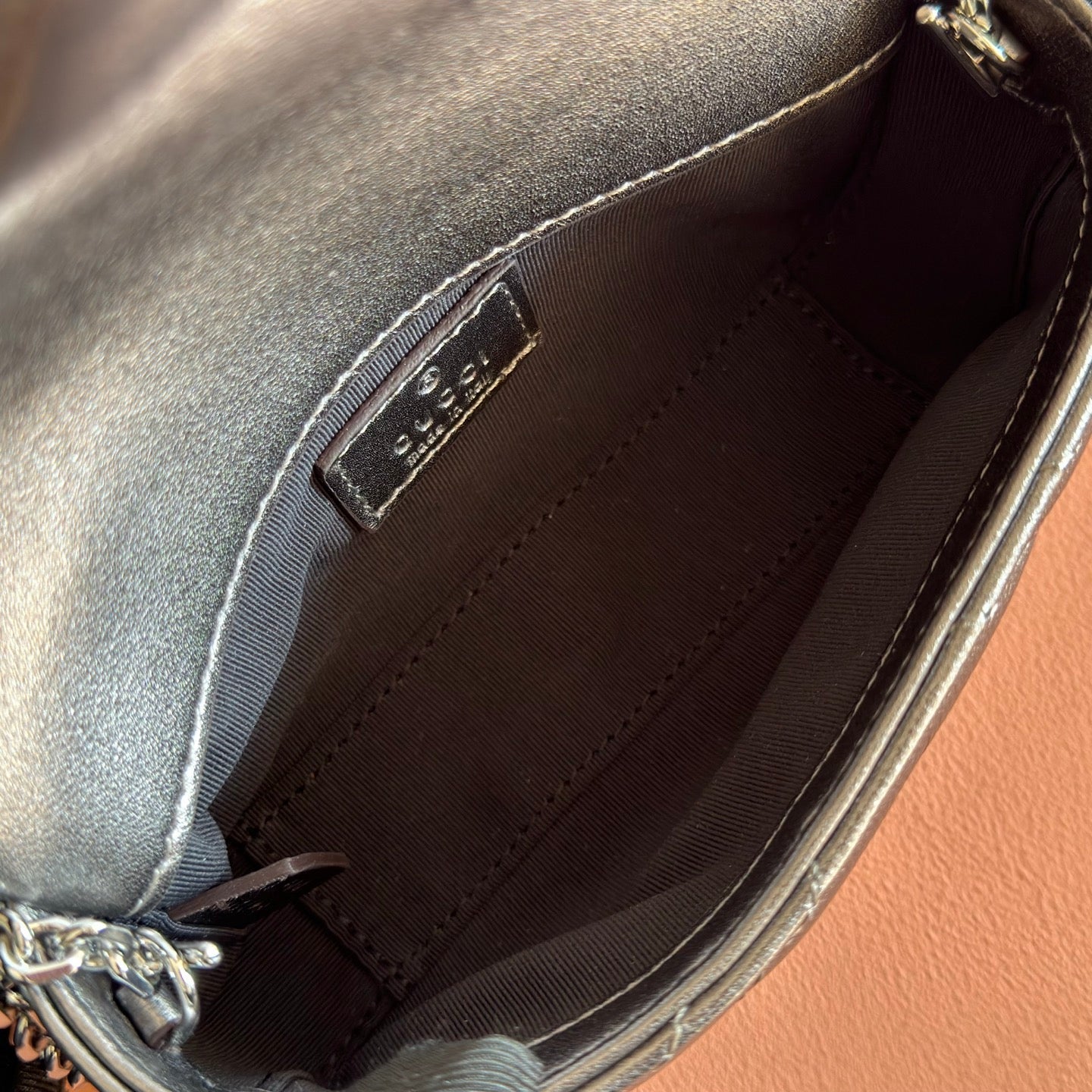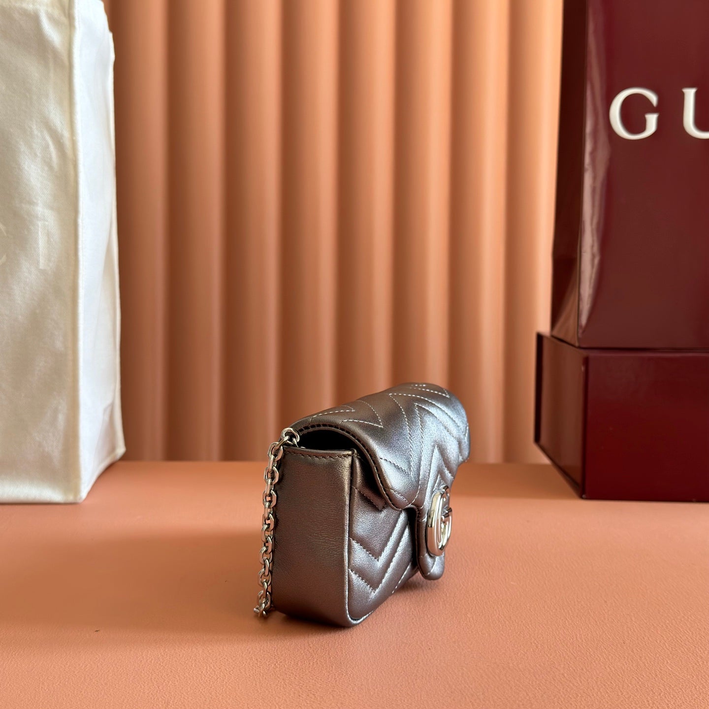 GUCCI 26S GG MARMONT BAG 16 IN WARM GRAY BROWN LAMBSKIN