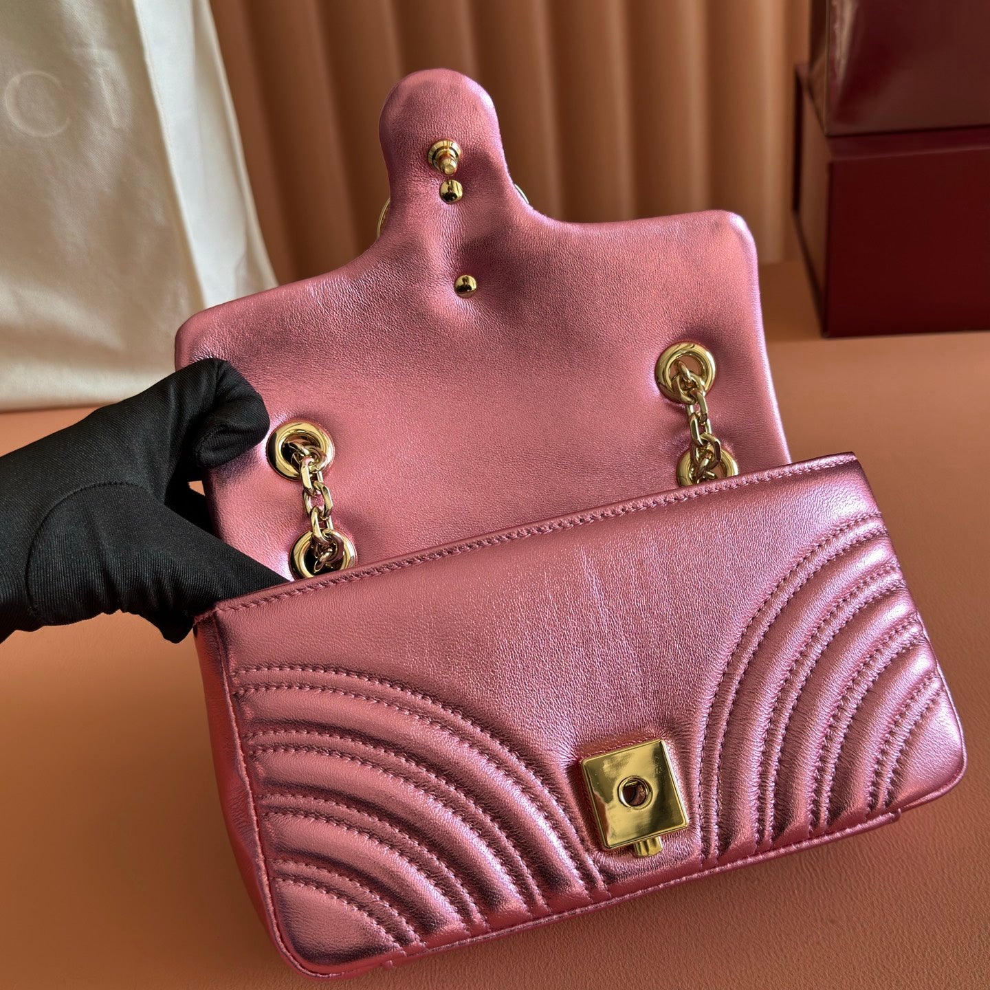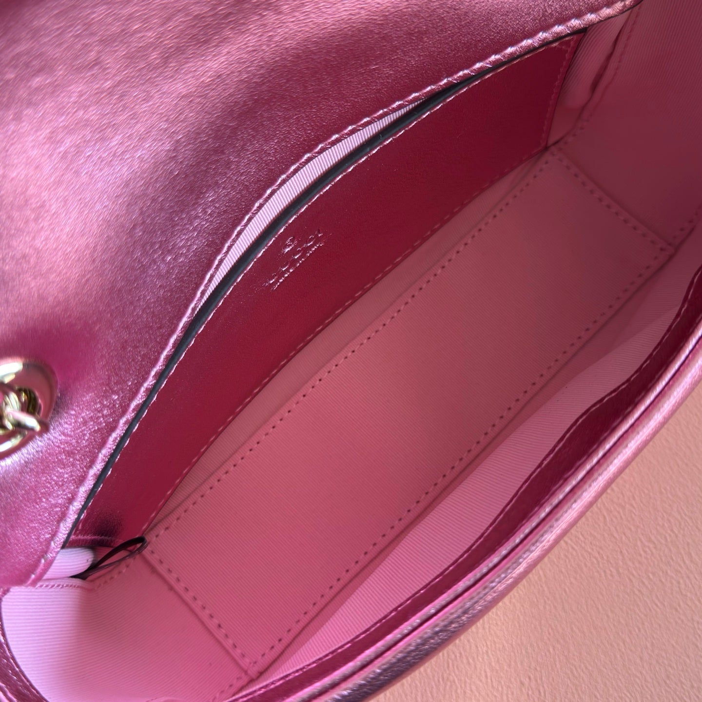 GUCCI 26S GG MARMONT BAG 22 IN METALLIC PINK LAMBSKIN