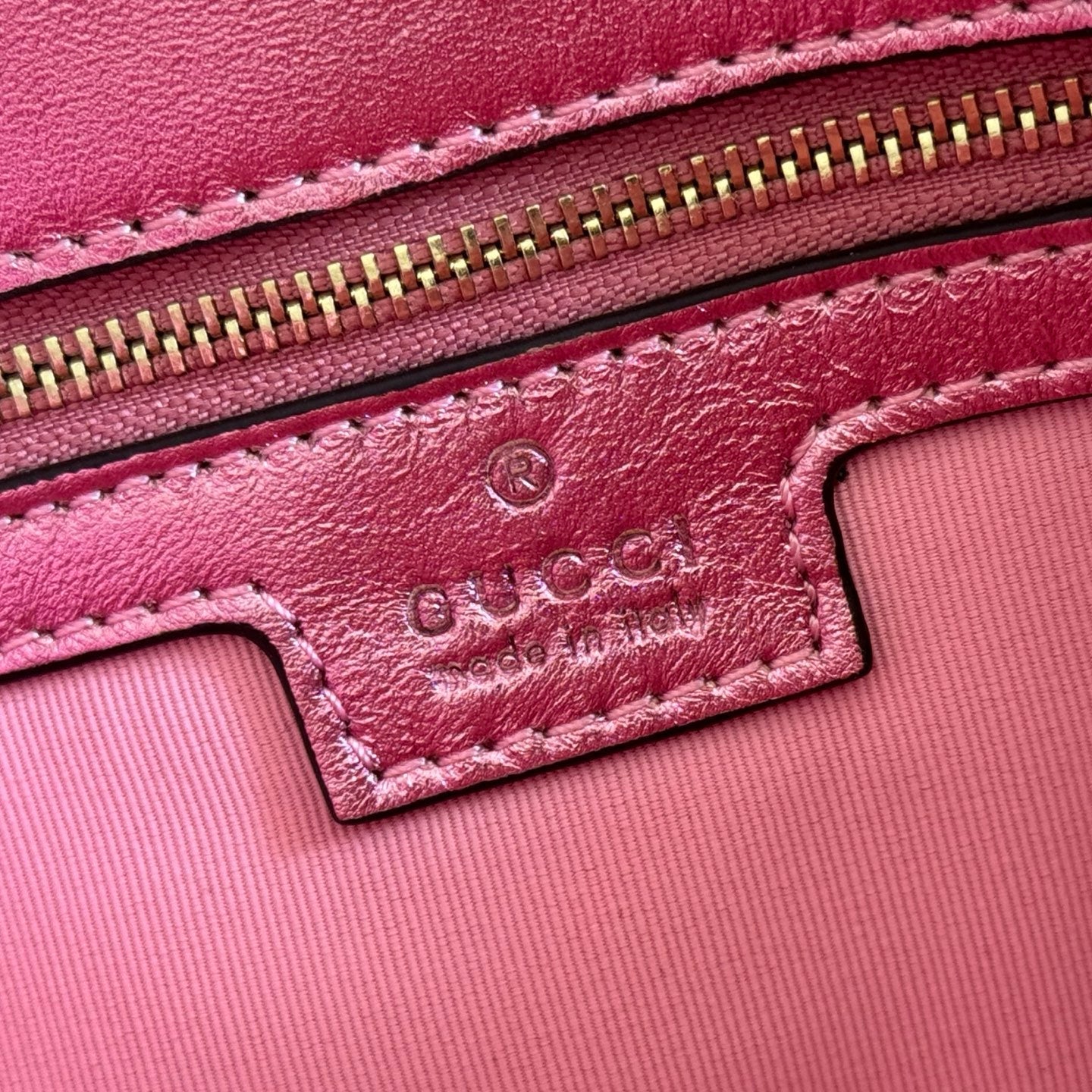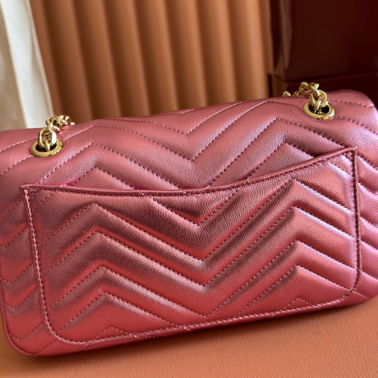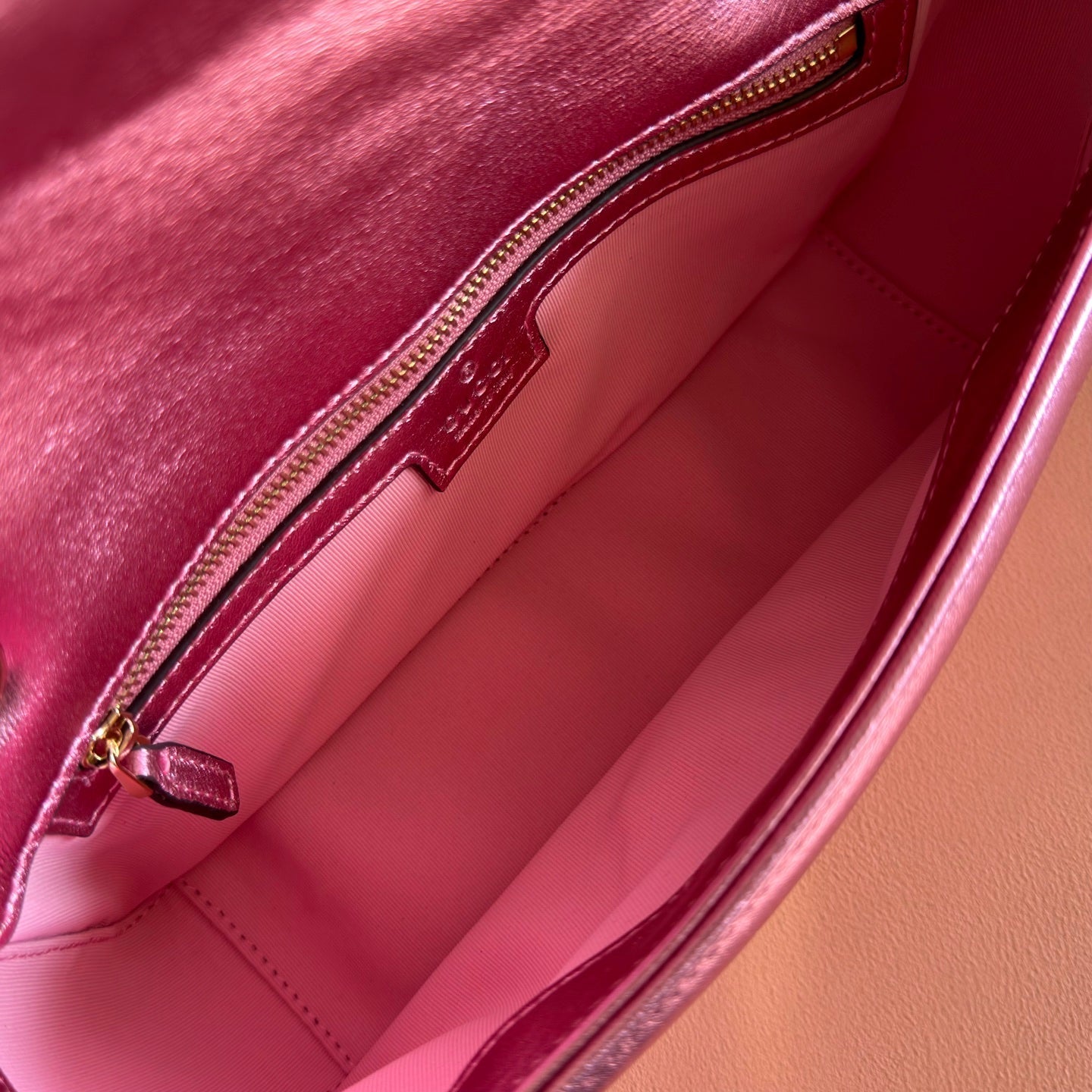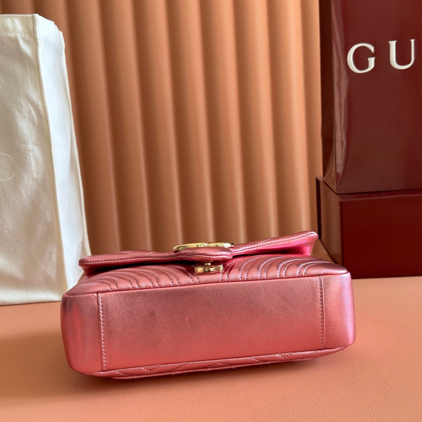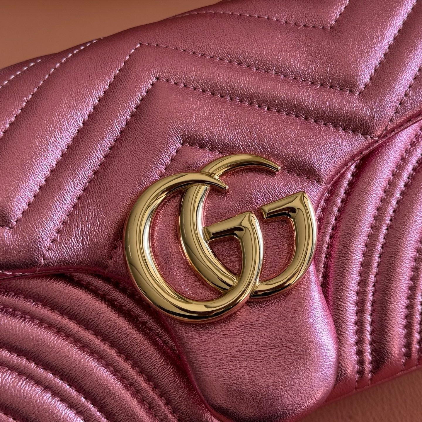 GUCCI 26S GG MARMONT BAG 26 IN METALLIC PINK LAMBSKIN