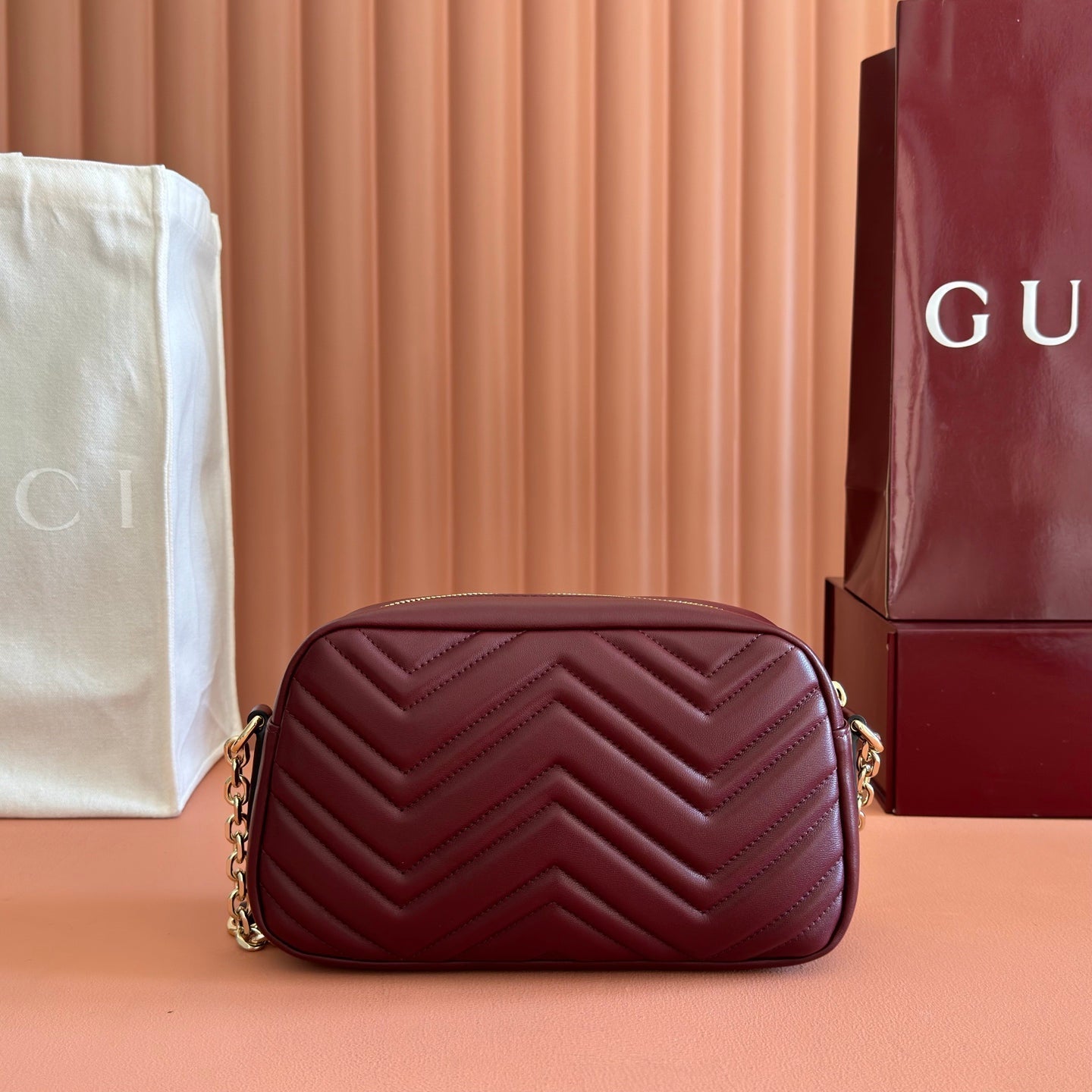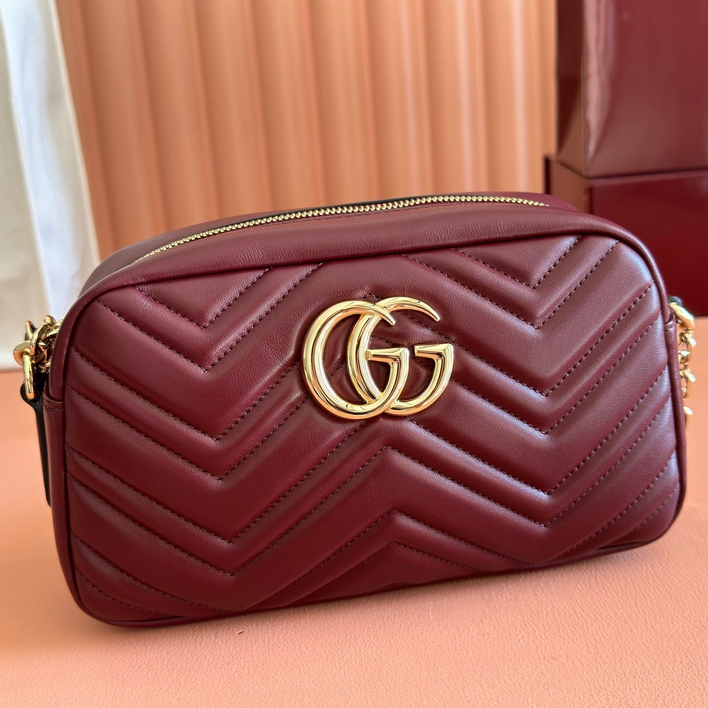 GUCCI 26S GG MARMONT SHOULDER BAG 24 IN DARK RED CALFSKIN
