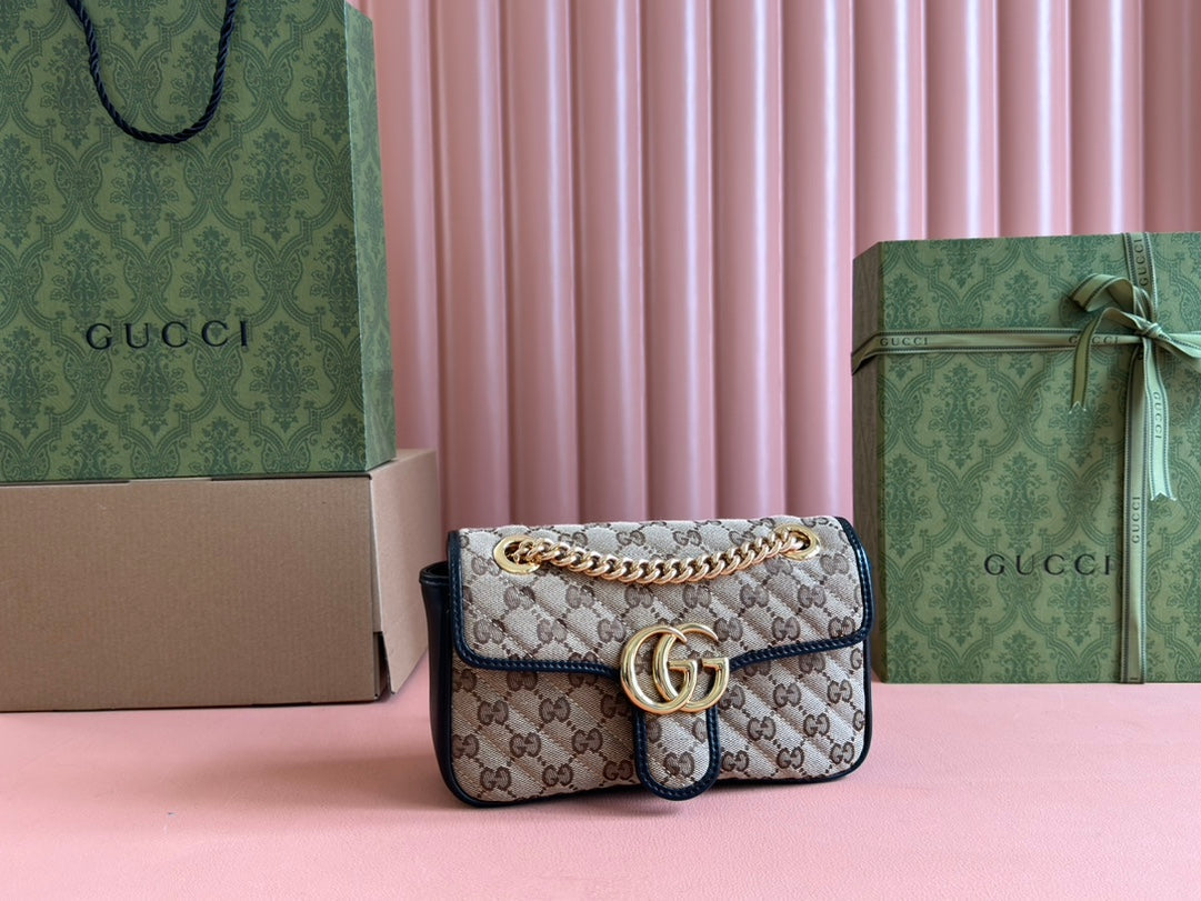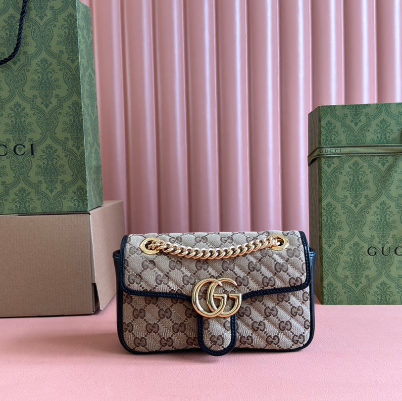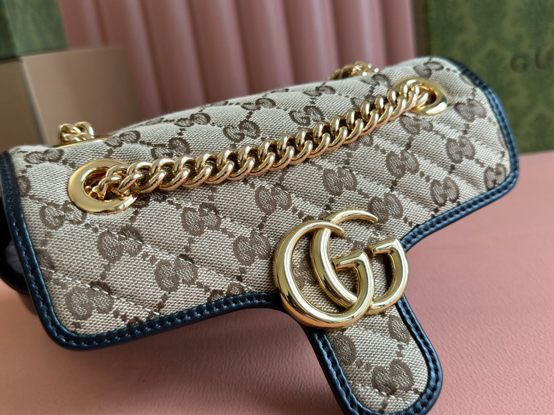 MARMONT MEDIUM SHOULDER BAG 22 IN BEIGE AND BROWN GG CANVAS BLACK CALFSKIN