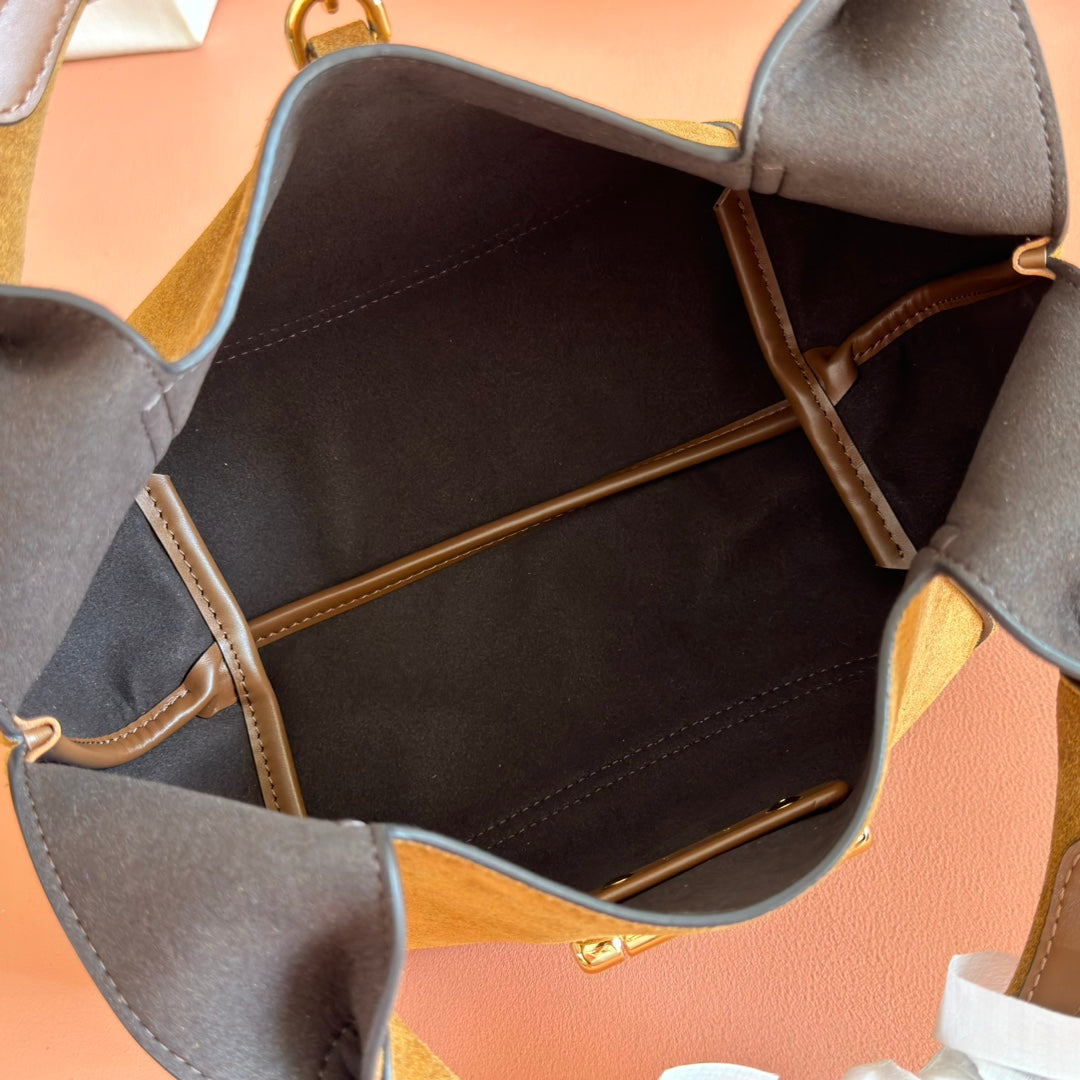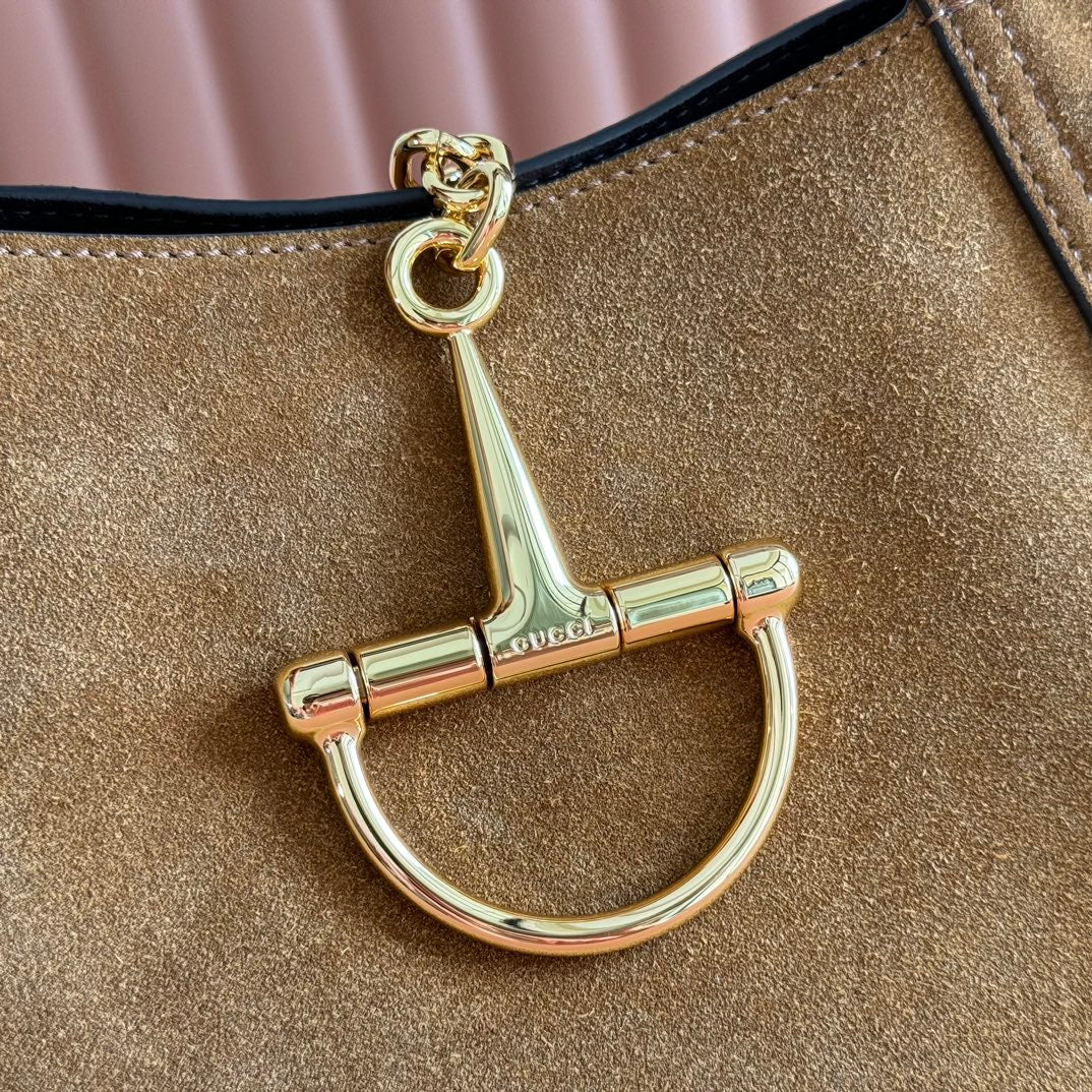 GUCCI 25S HANDBAG 28 CM IN DARK WOOD BROWN SUEDE WITH GOLD HARDWARE