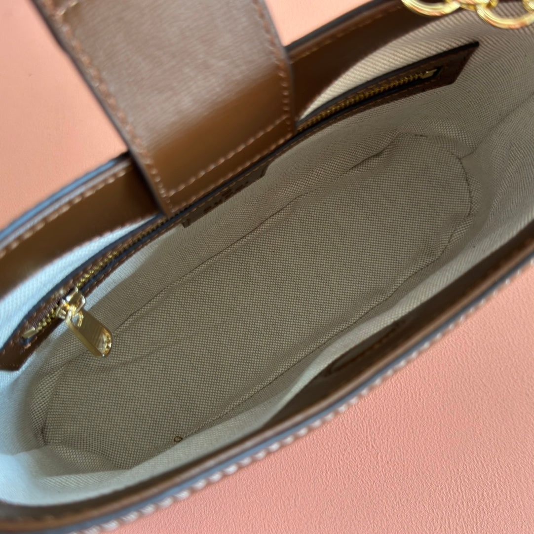 GUCCI 25S SHOULDER BAG 25 CM IN BEIGE MIX BROWN CALFSKIN