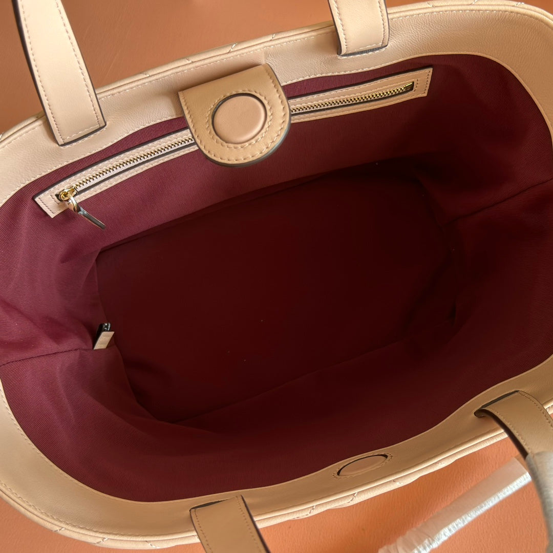 GUCCI 25S SMALL TOTE BAG 39 CM IN NUDE PINK CALFSKIN WITH GOLD HARDWARE