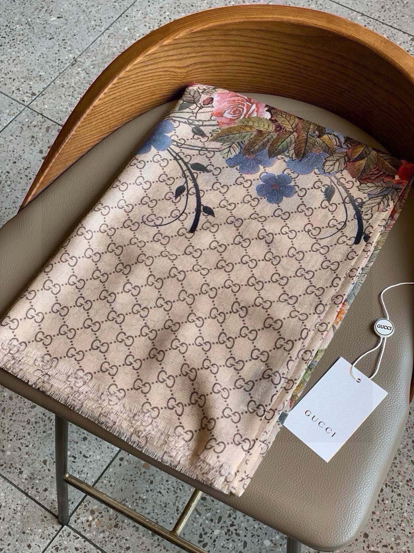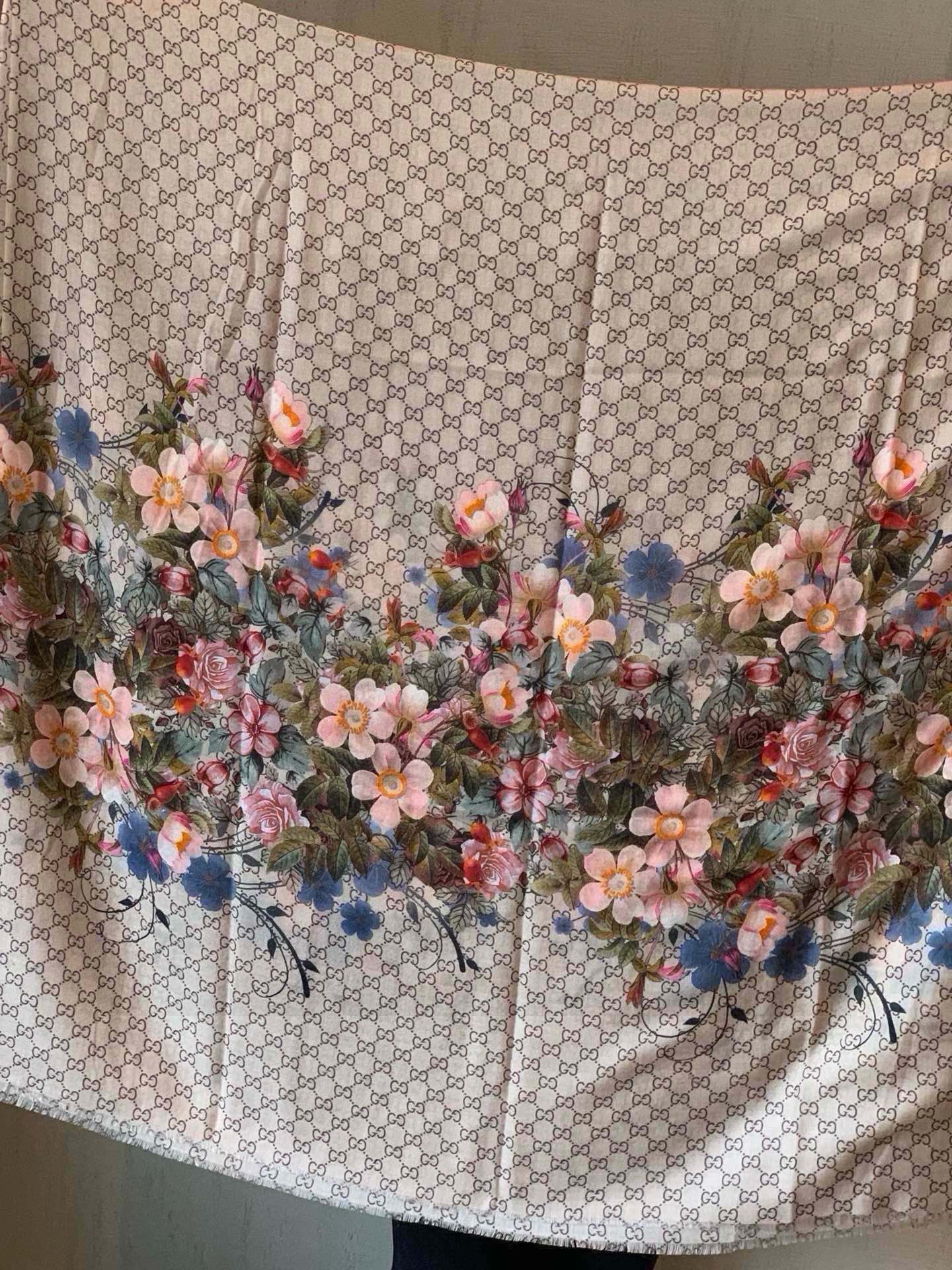 SCARF 200 CM IN MEDIUM BROWN CASHMERE WITH COLORFUL FLOWER 405254