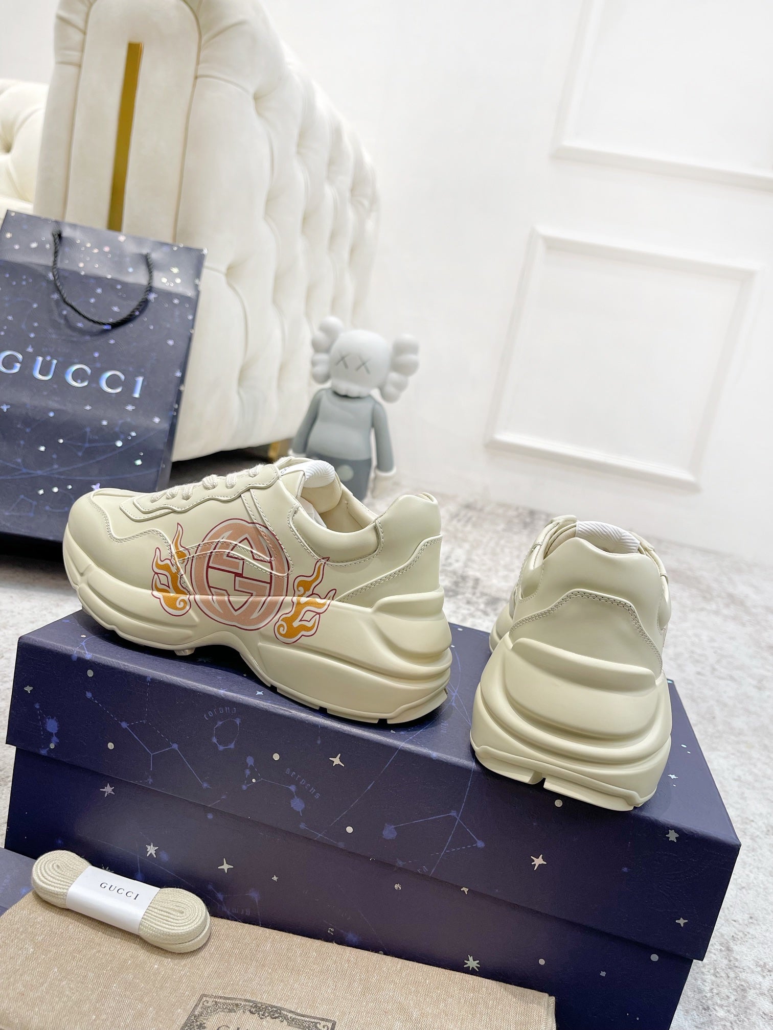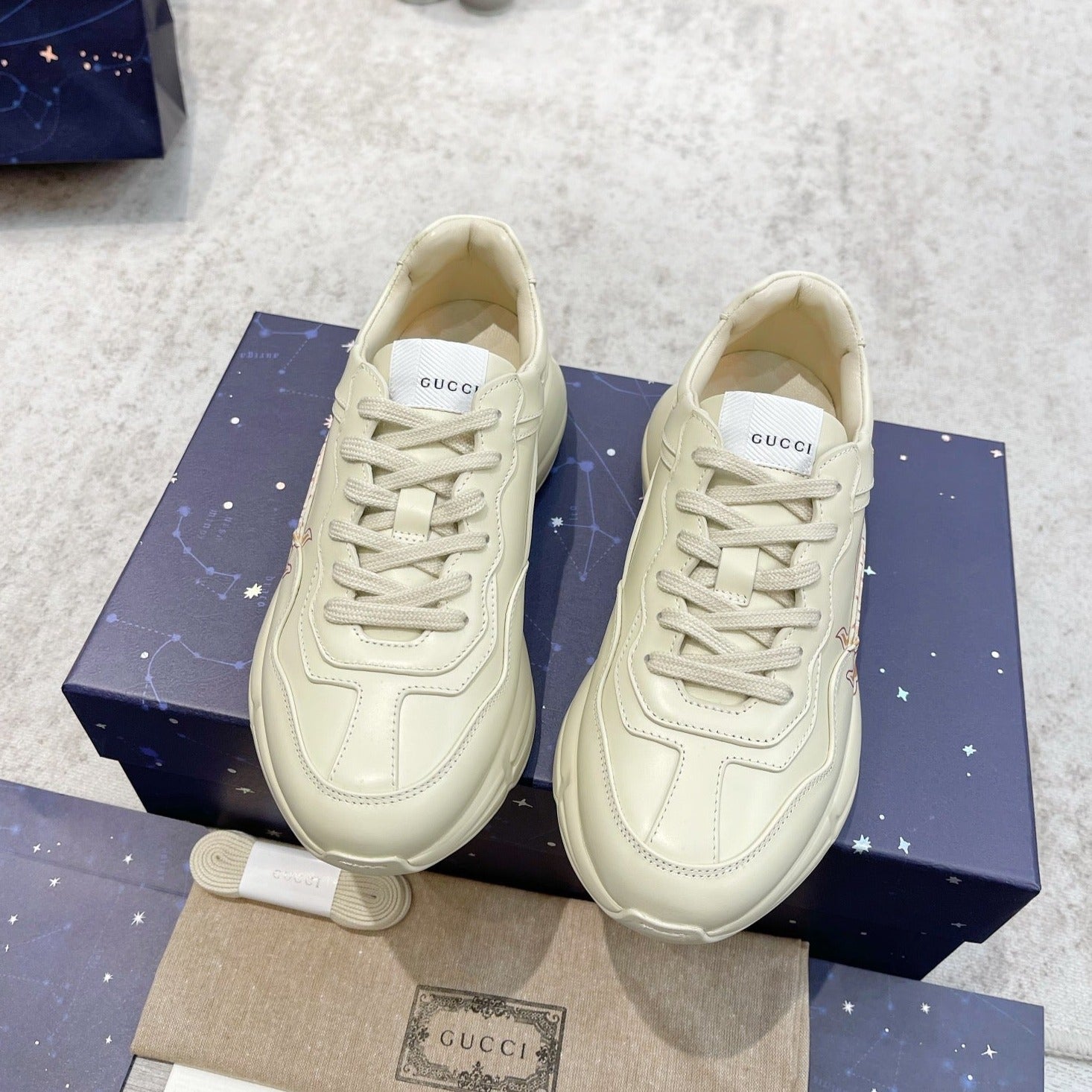 GG RHYTON TRAINER WHITE LAMBSKIN WITH FIRE MOTIF