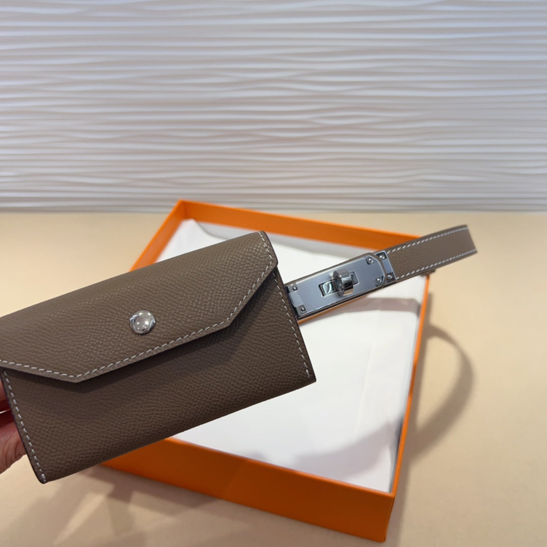 HM KELLY DARK BROWN POCKET 18MM BELT LEATHER SILVER HARDWARE