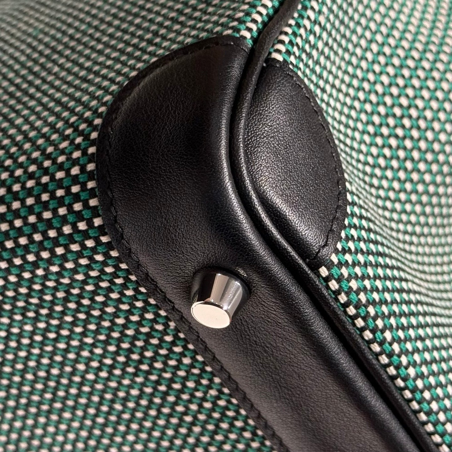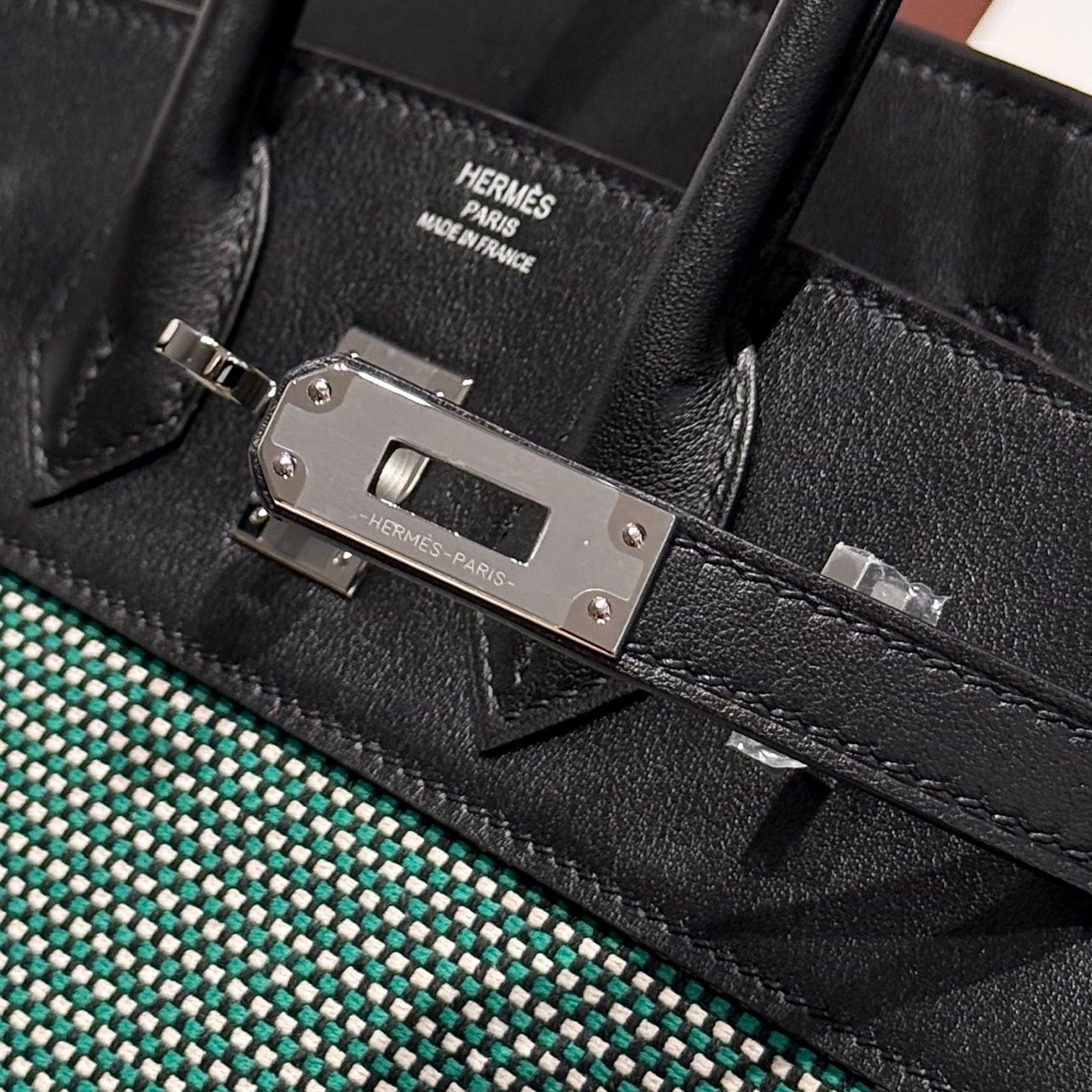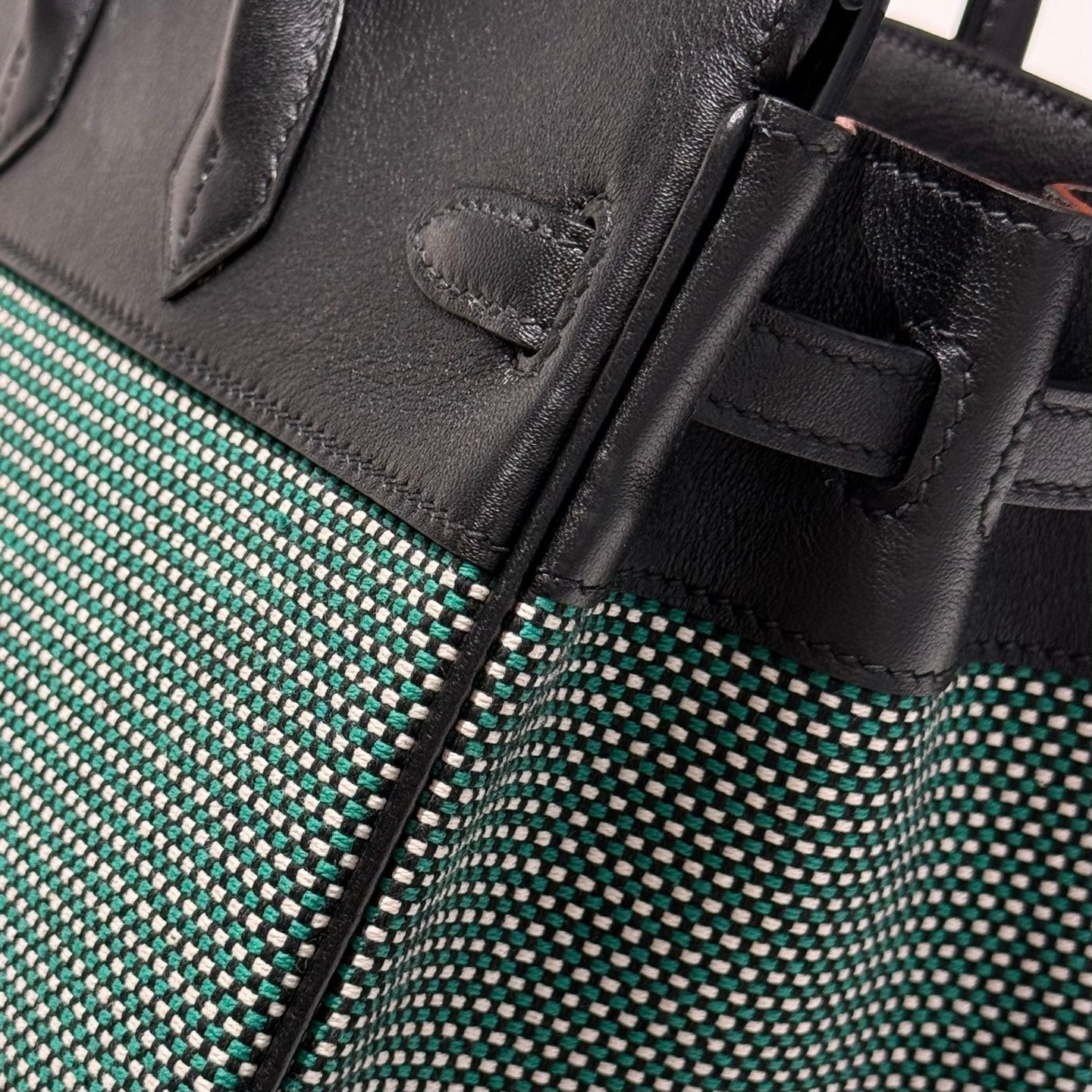 QUADRILLE BIRKIN 25CM IN BLACK SWIFT CALFSKIN BLACK/MINT/BLANC TOILE CANVAS