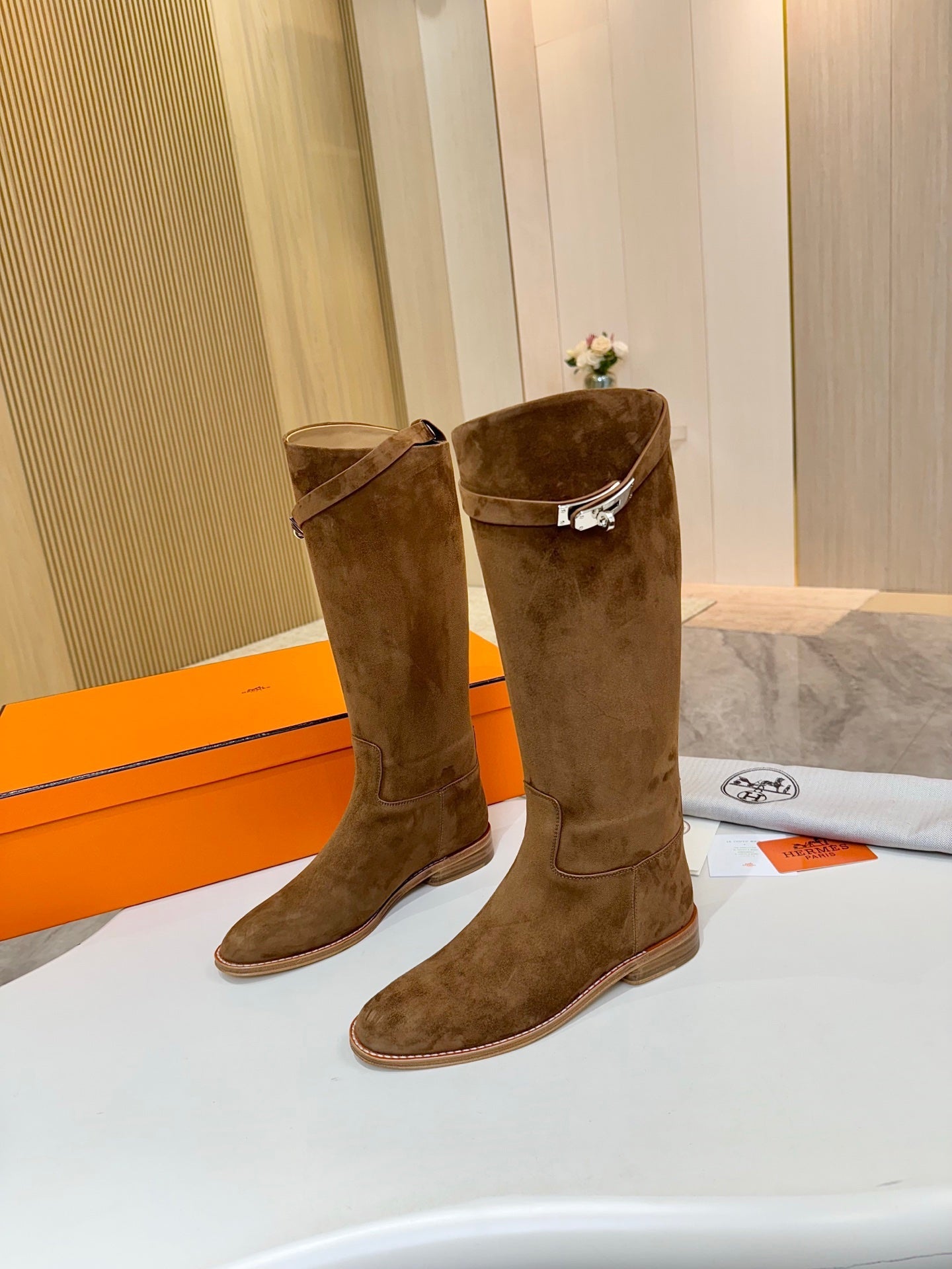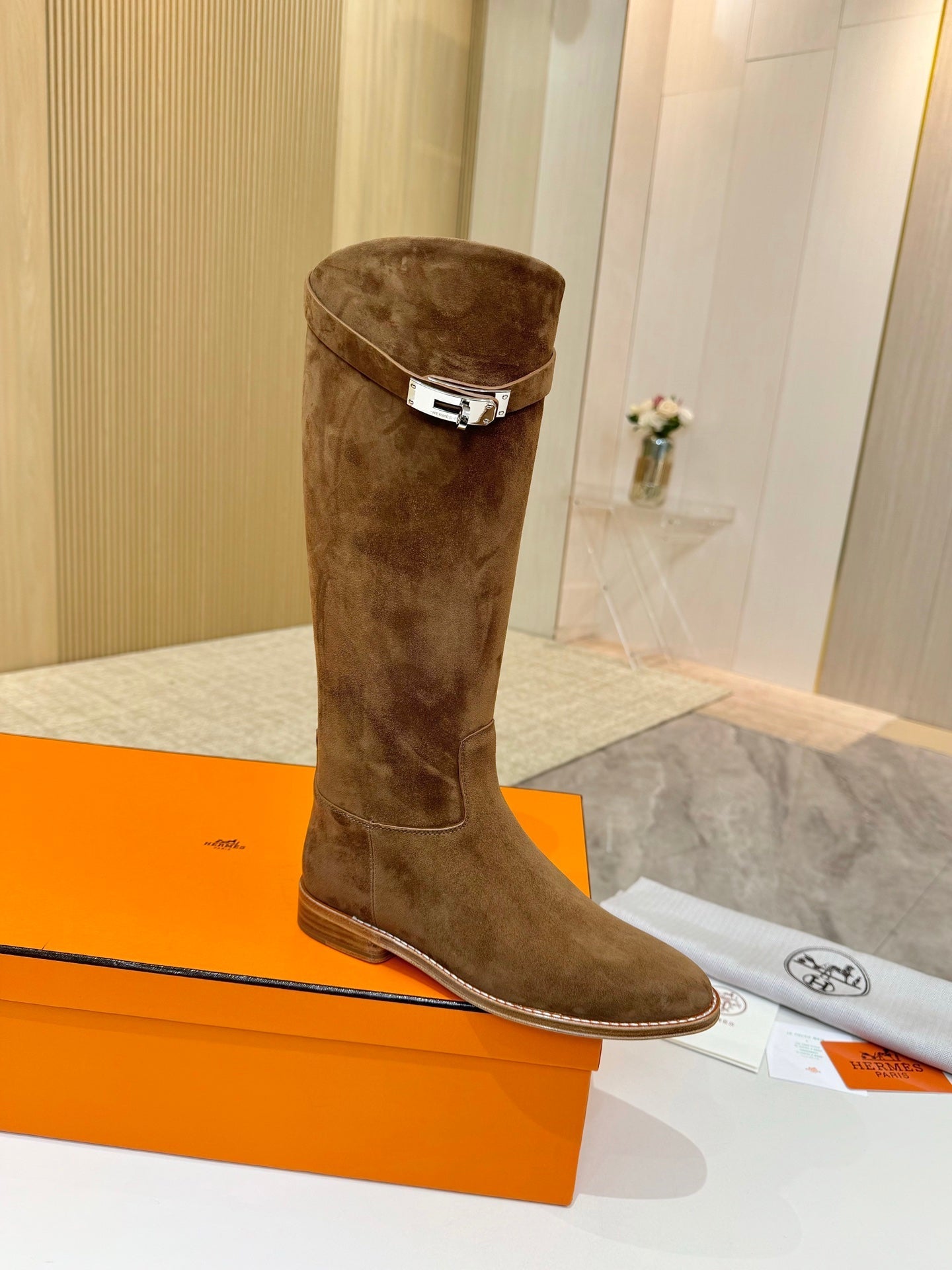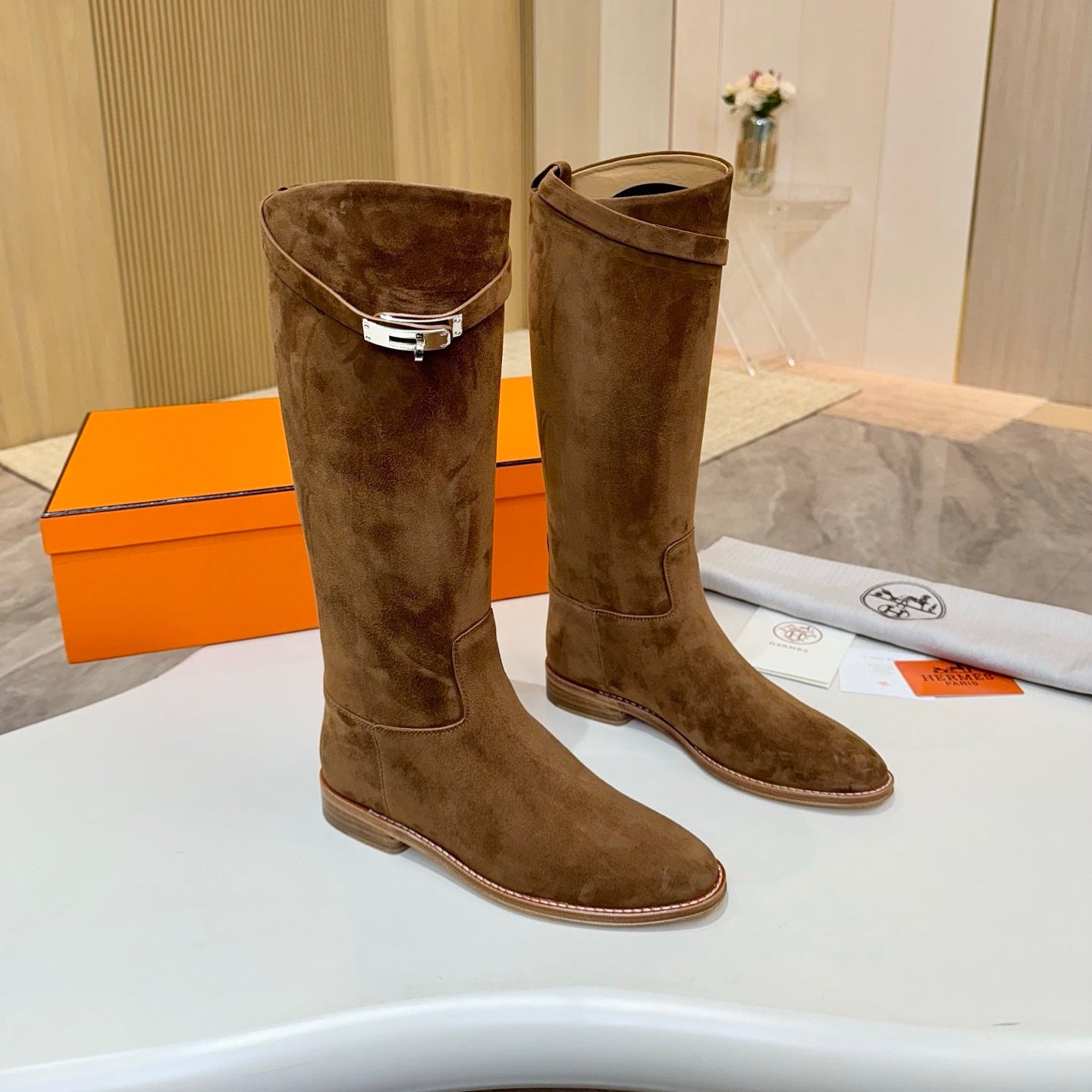 HM 25S JUMPING KNEE-HIGH BOOTS IN BROWN SUEDE WITH SILVER HARDWARE