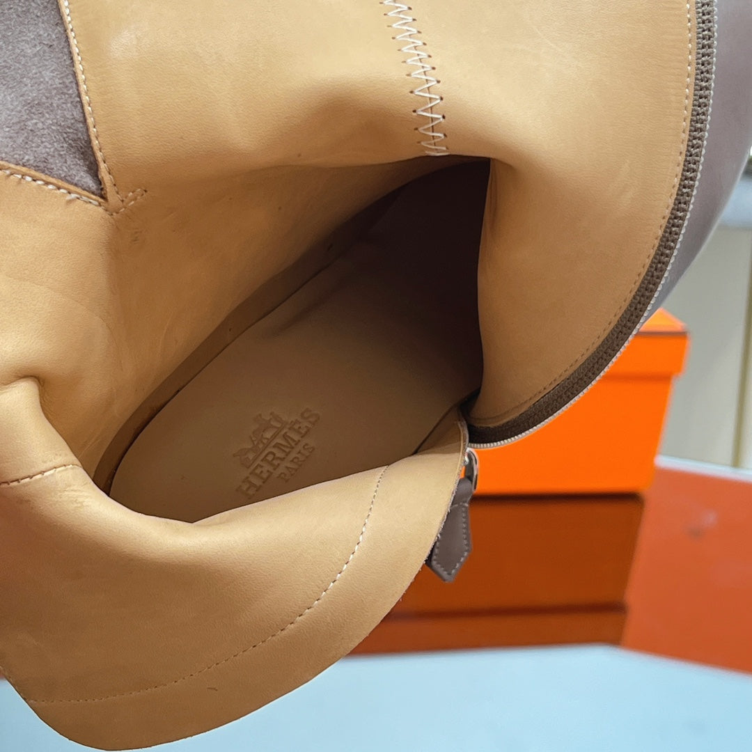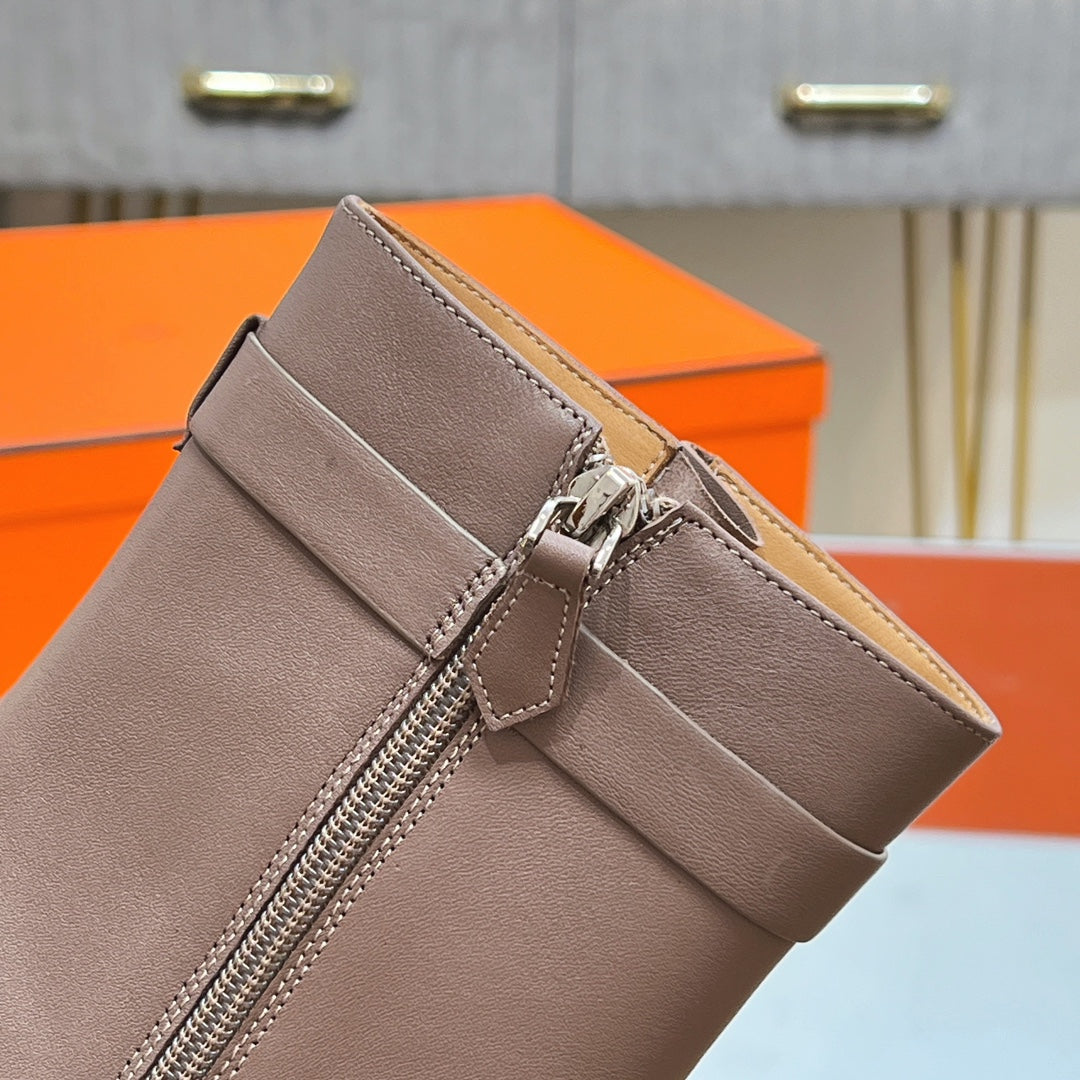 HM 25S SAINT GERMAIN ANKLE BOOTS 90 MM IN TAUPE BROWN LAMBSKIN WITH SILVER HARDWARE