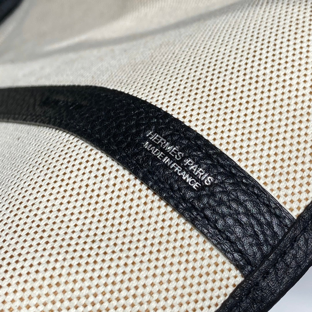 GARDEN PARTY 36 IN BEIGE AND BLACK TOILE H CANVAS BLACK CALFSKIN HORSE TACK SKETCH PRINT