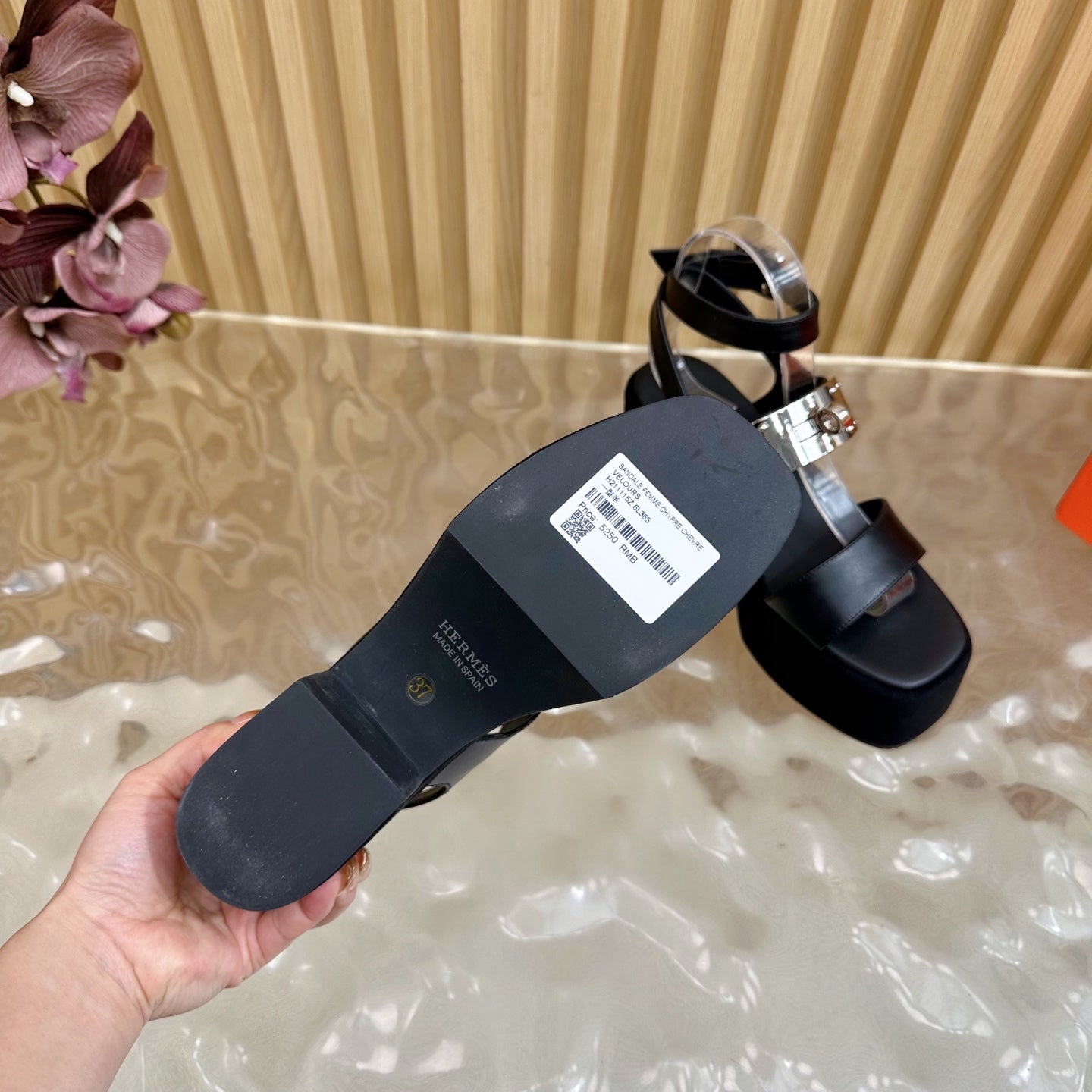 HM 25S CLASSIC WEDGE SANDALS 70 MM IN BLACK LAMBSKIN WITH SILVER HARDWARE