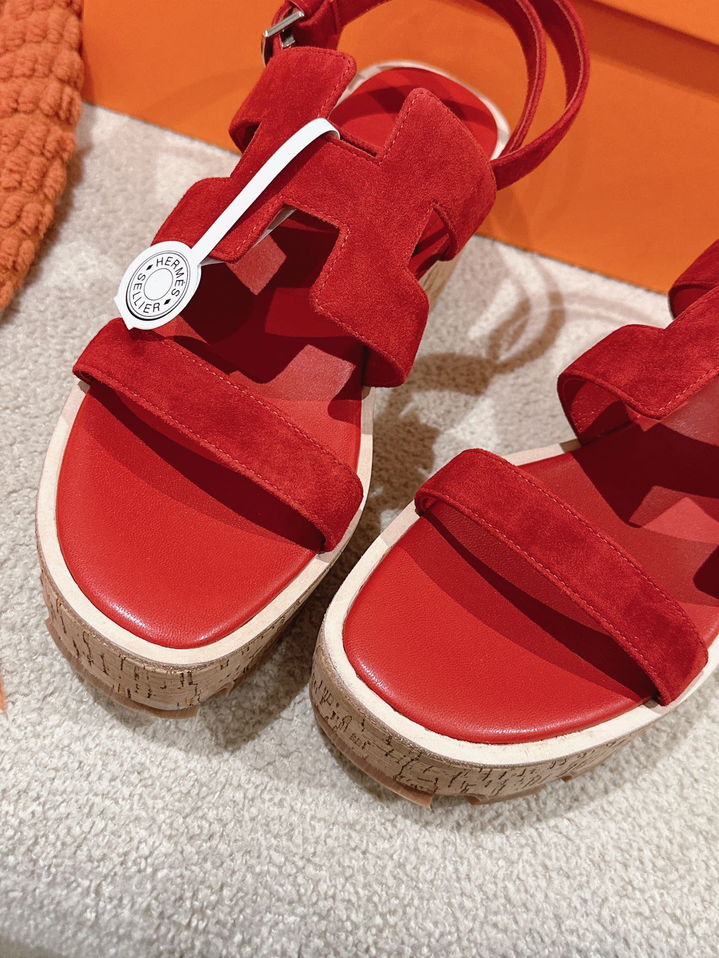 HM 25S HAVANE WEDGE SANDAL IN RED SUEDE