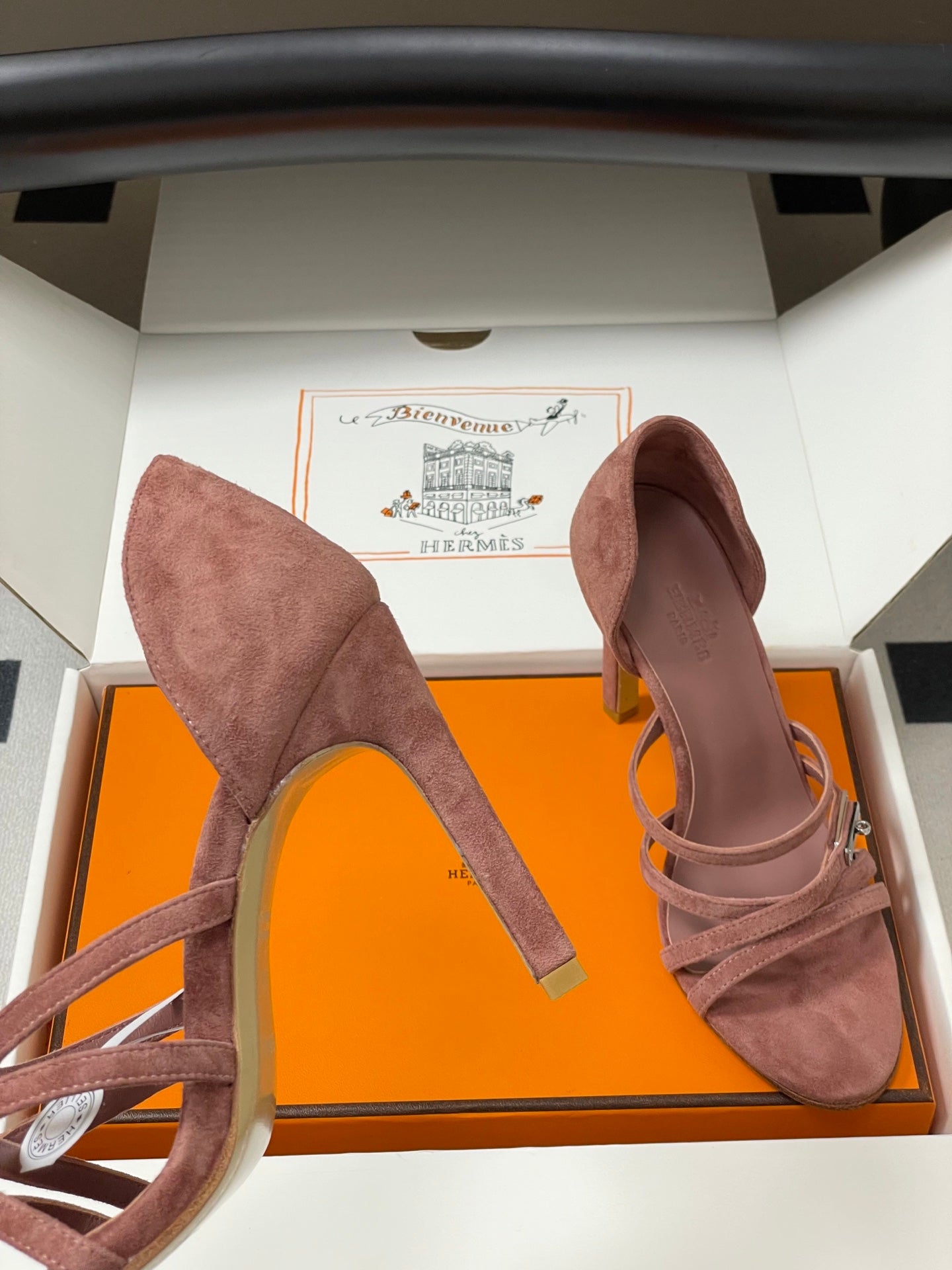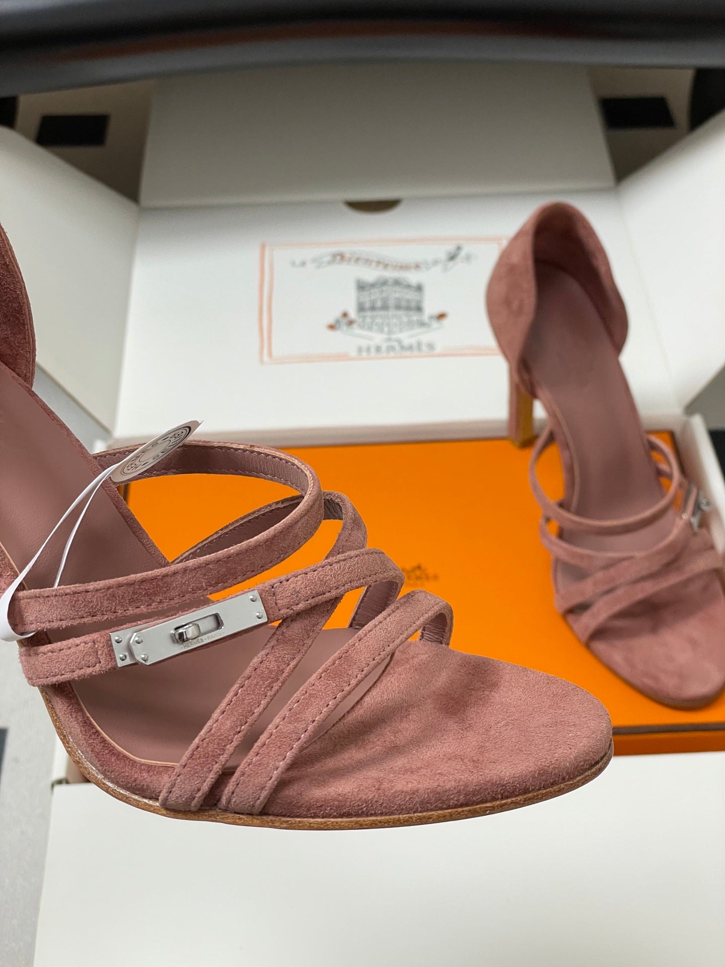 HM 25S HIGH-HEEL SANDAL 105 MM IN PEACHY PINK SUEDE