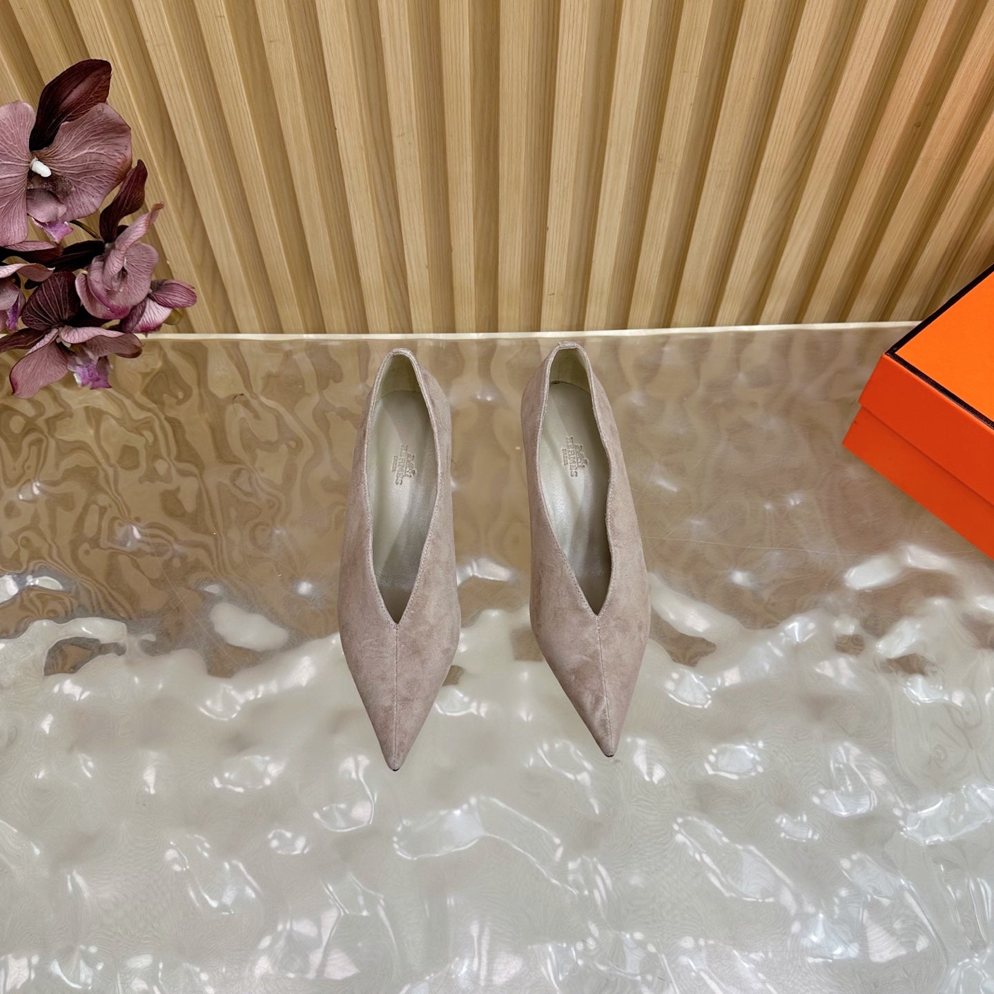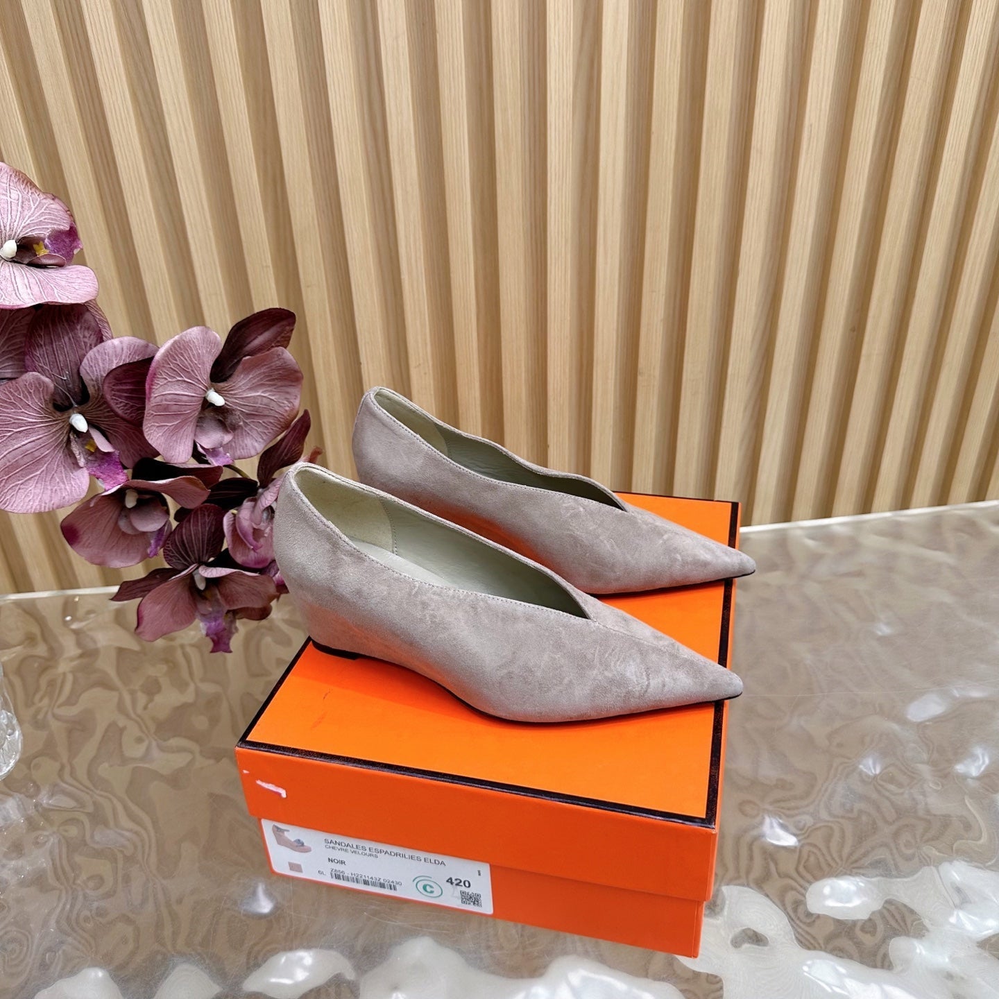 HM 25S HIGH-HEEL WEDGE SHOES 50 MM IN DUSTY BEIGE SUEDE
