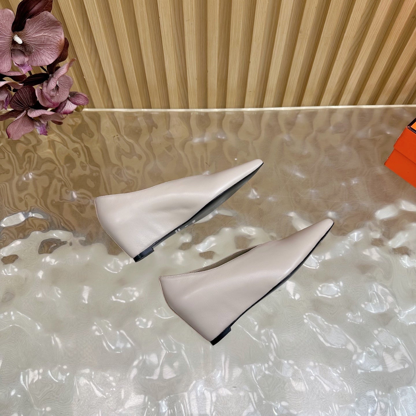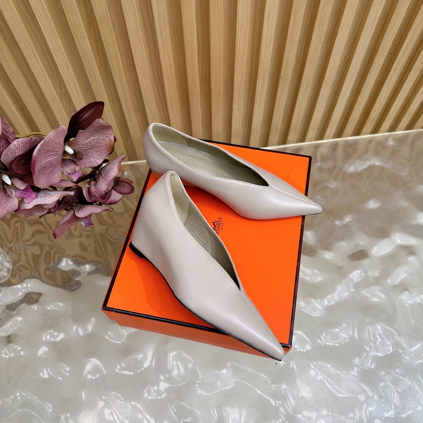 HM 25S HIGH-HEEL WEDGE SHOES 50 MM IN PALE PINK BEIGE LAMBSKIN