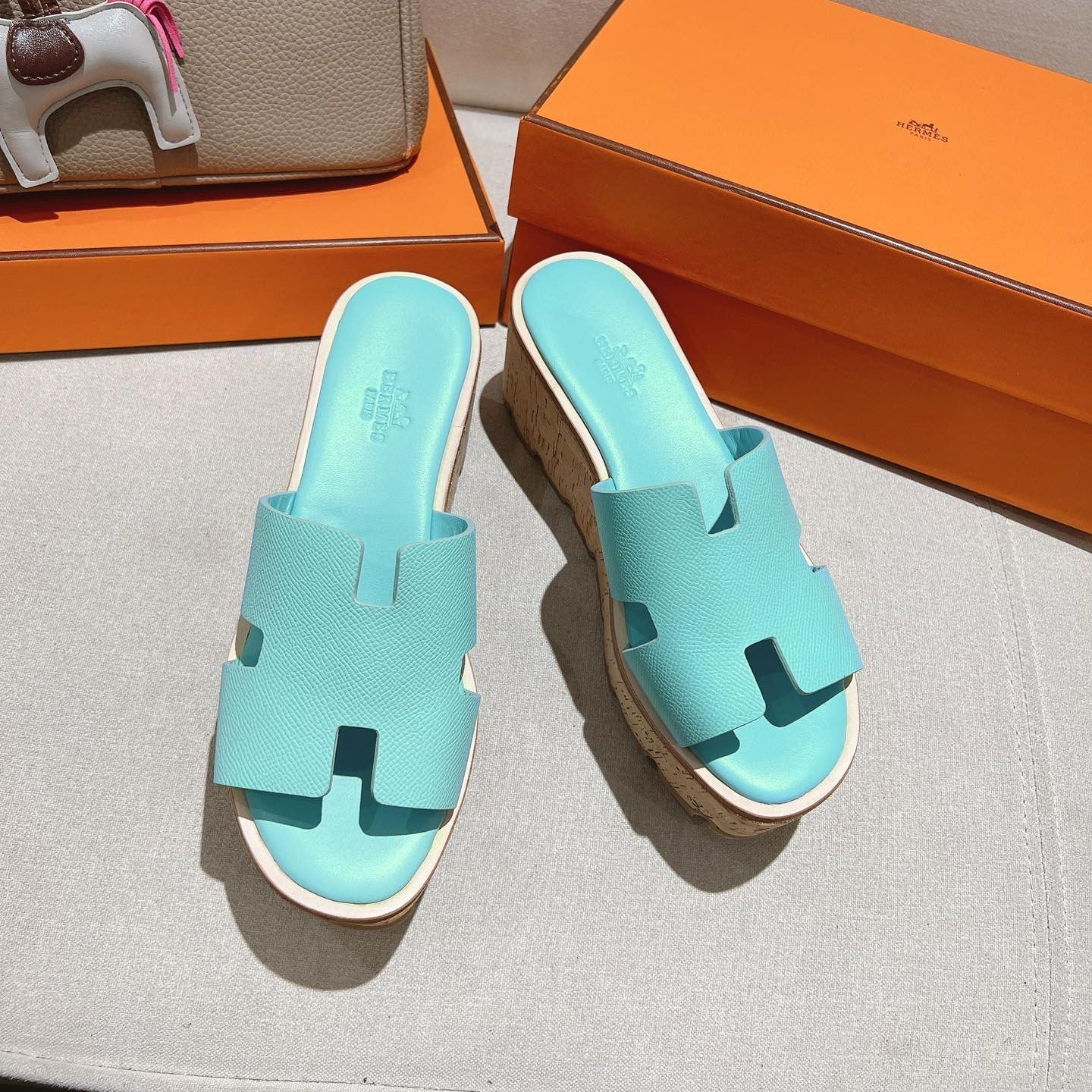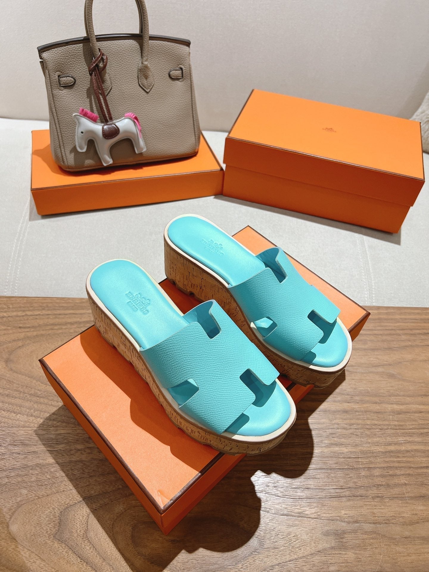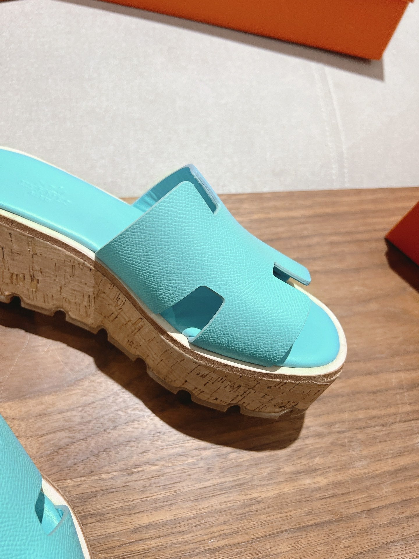 HM 25S HIGH WEDGE SANDALS IN LIGHT MINT BLUE LAMBSKIN STYLE 5