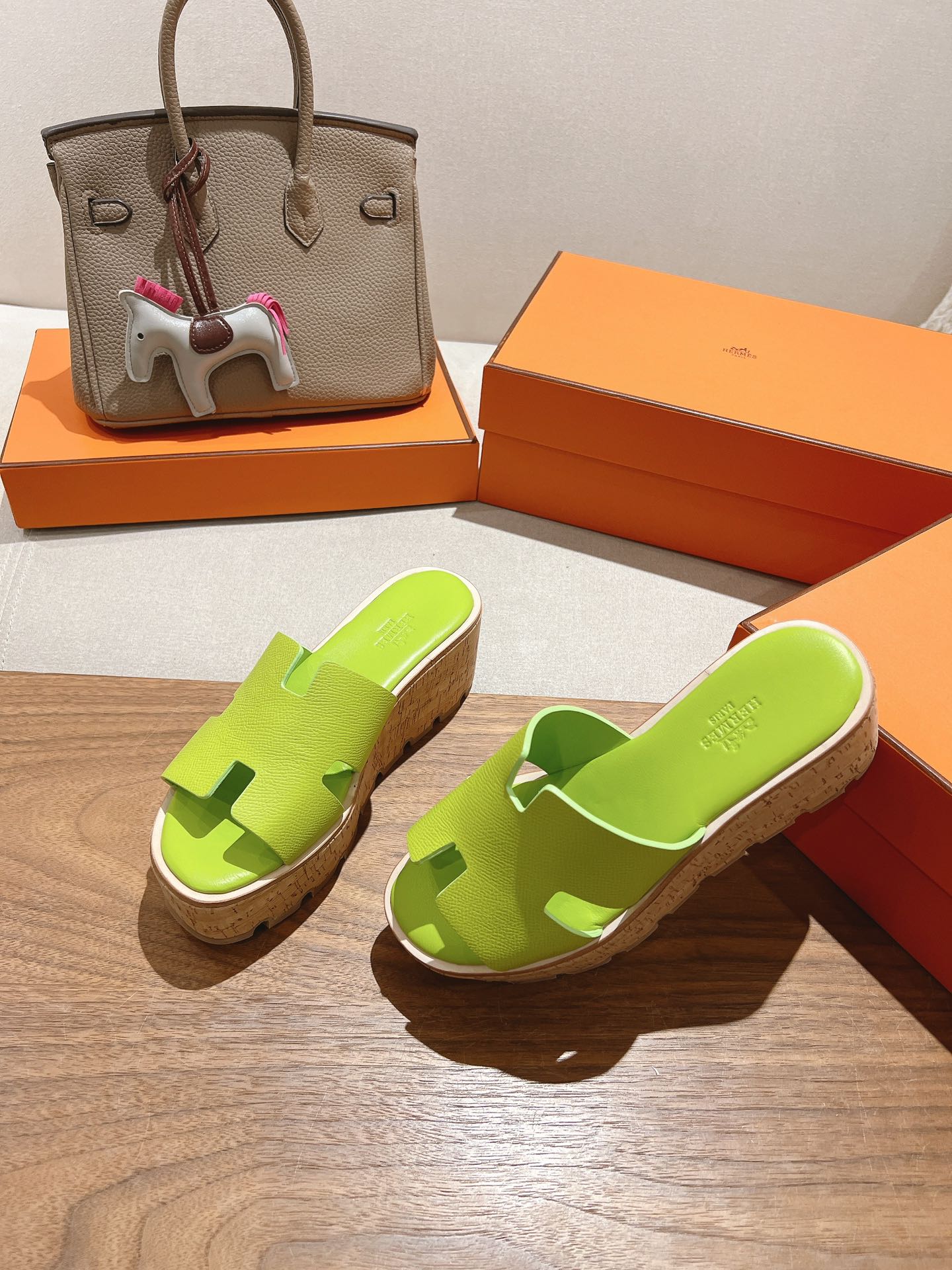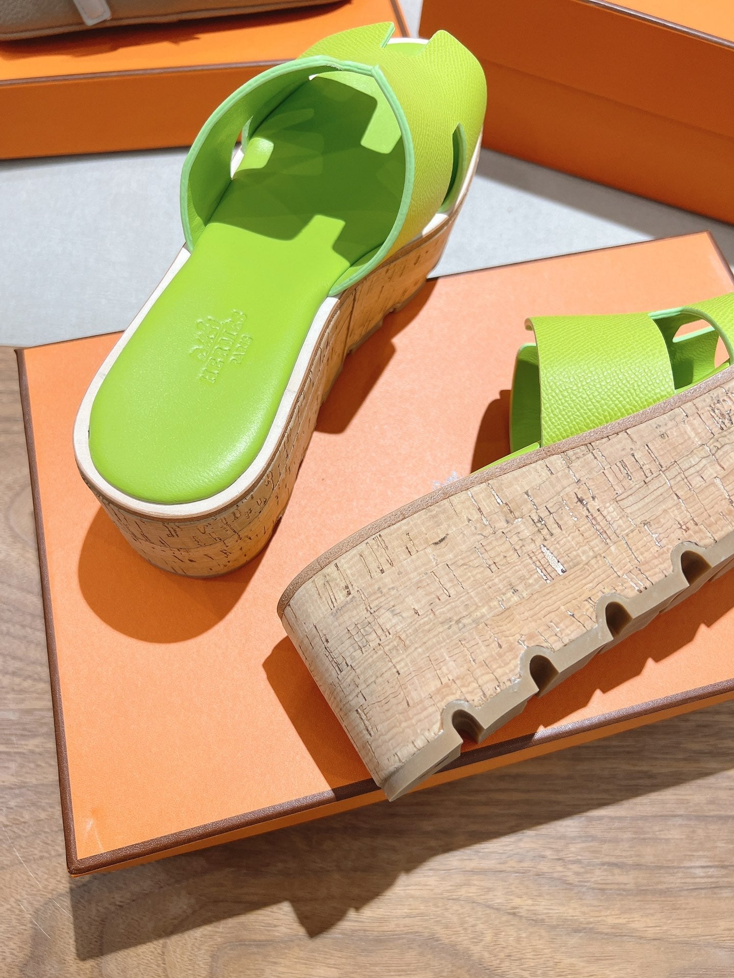 HM 25S HIGH WEDGE SANDALS IN SPRING GREEN LAMBSKIN STYLE 22