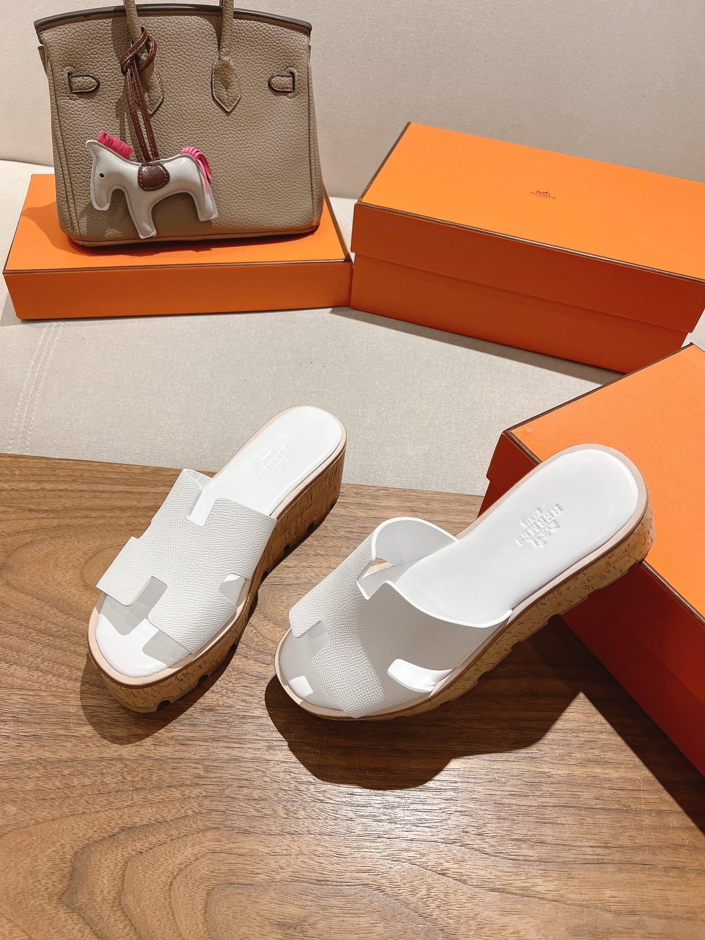 HM 25S HIGH WEDGE SANDALS IN WHITE LAMBSKIN STYLE 34