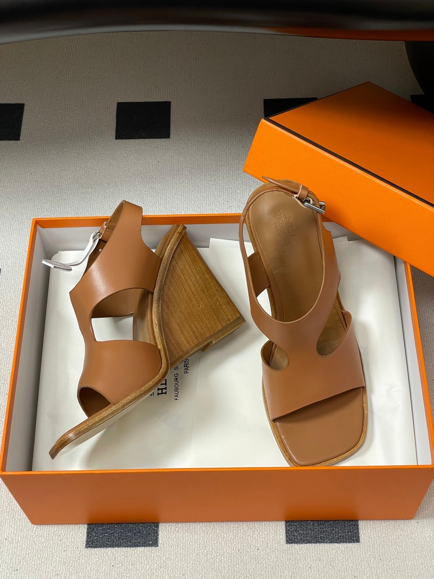 HM 25S KALYA WEDGE SANDAL 100 MM IN BROWN LAMBSKIN