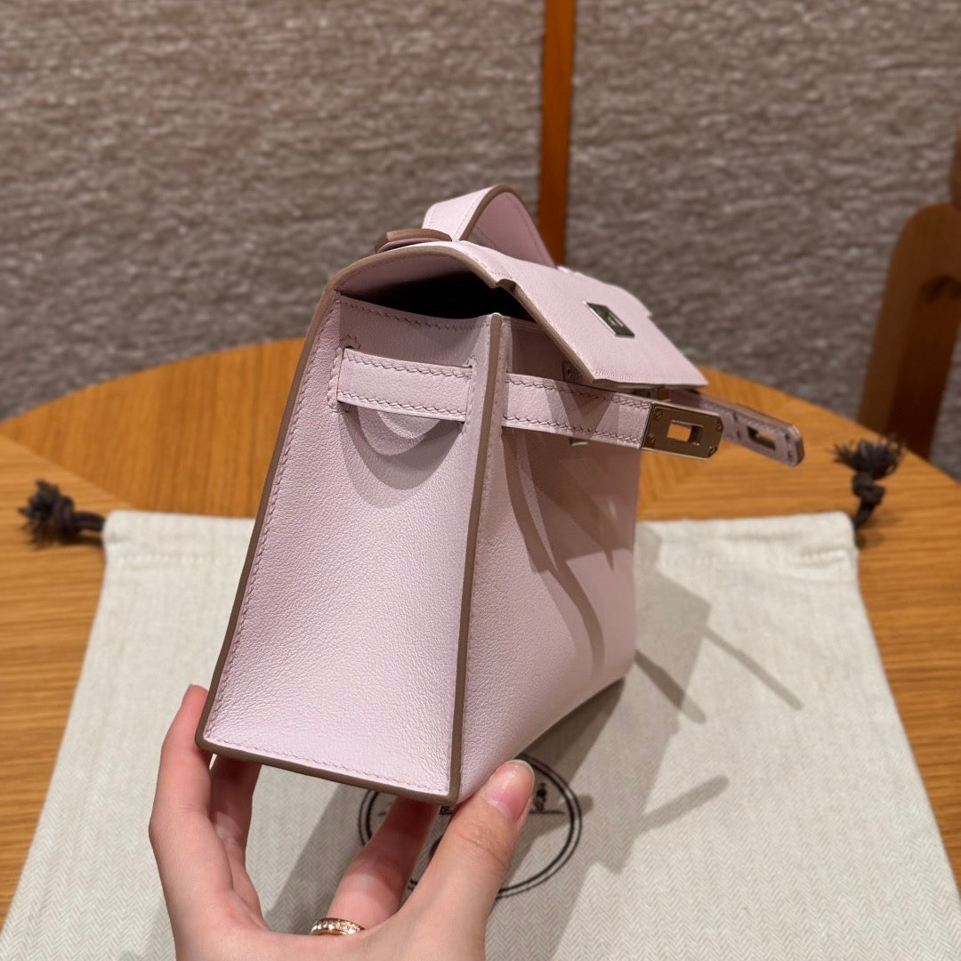 HM KELLY POCHETTE 22 IN LIGHT PINK CALFSKIN SILVER HARDWARE