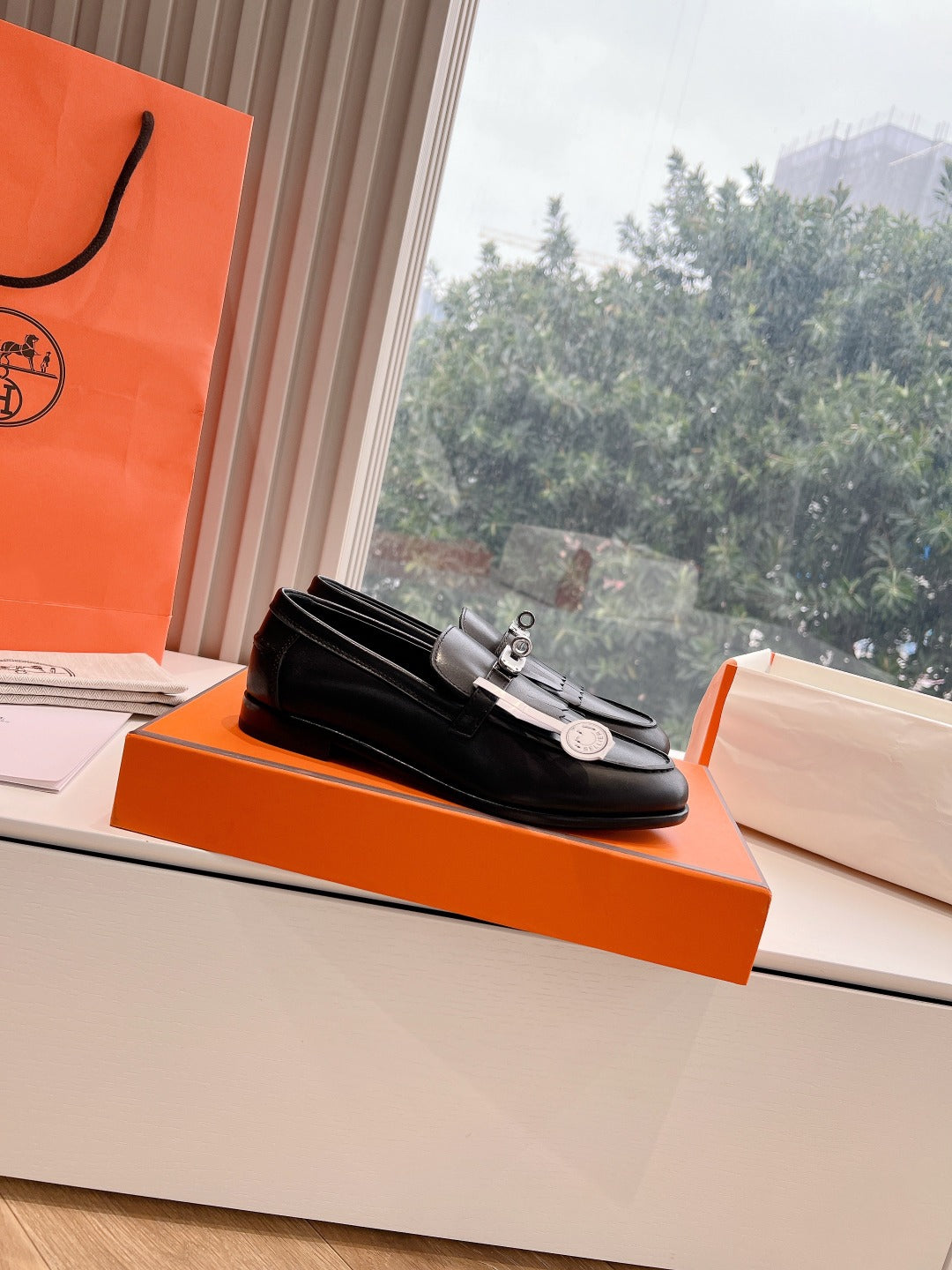 Destin Loafer Black Goatskin with Fringe Detail