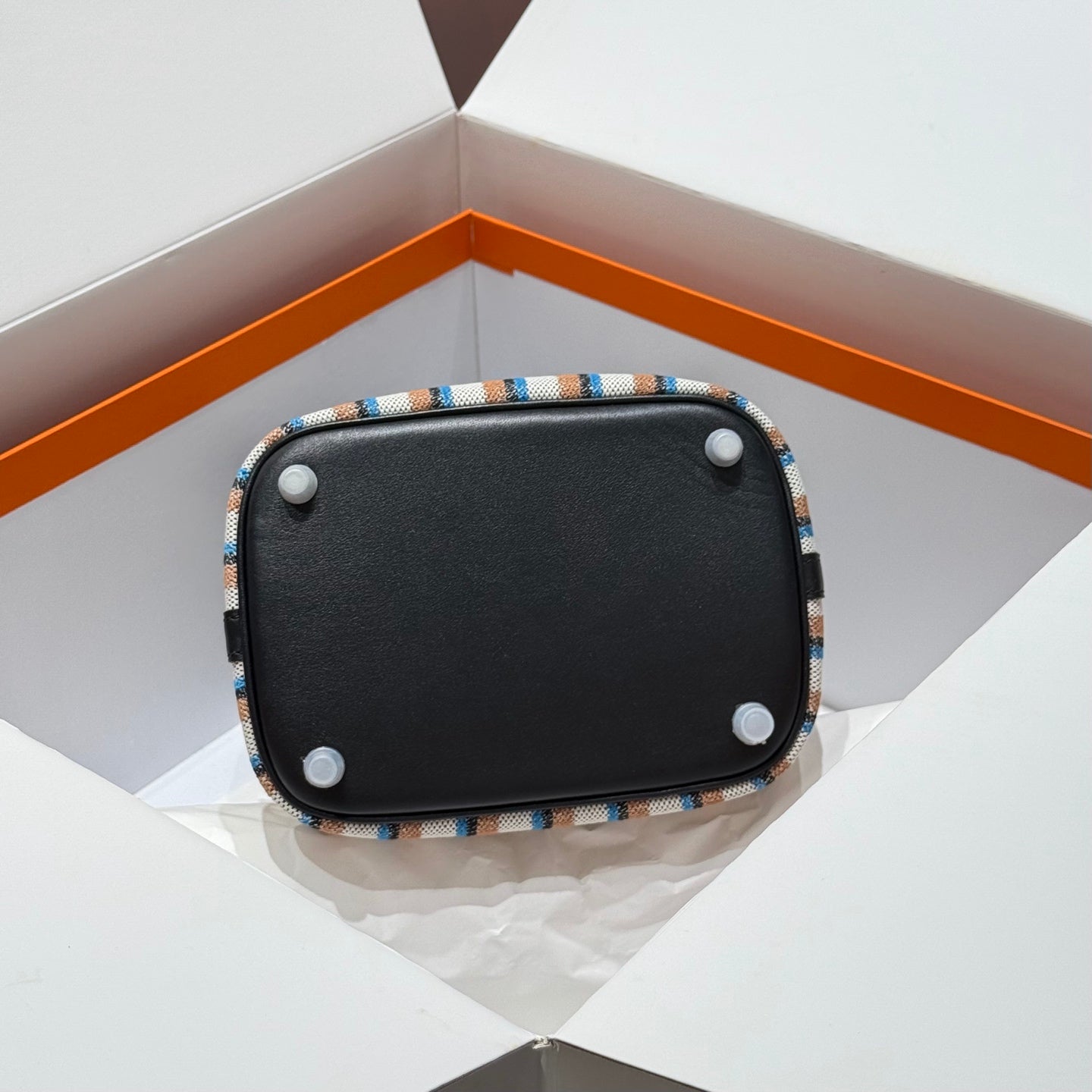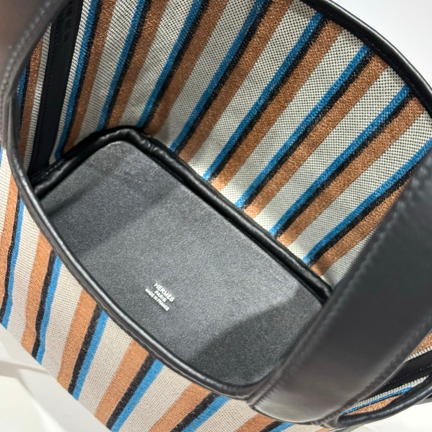 PICOTIN LOCK 18 BAG IN BLACK CALFSKIN ÉCRU/NOIR/FAUVE/NOIR/BLEU ZANZIBAR EMBROIDERY CANVAS