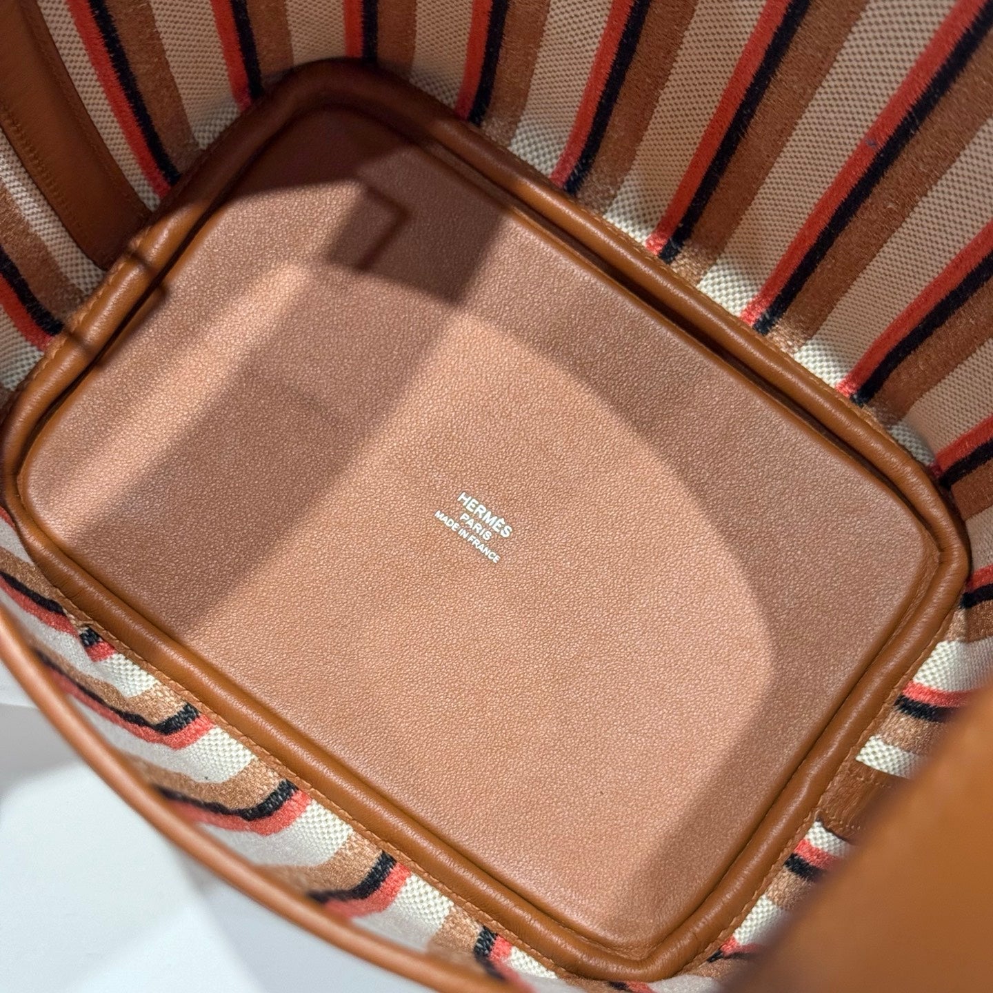 PICOTIN LOCK 18 BAG IN GOLD CALFSKIN ÉCRU/BEIGE/FAUVE/ROSE POP/NOIR EMBROIDERY CANVAS