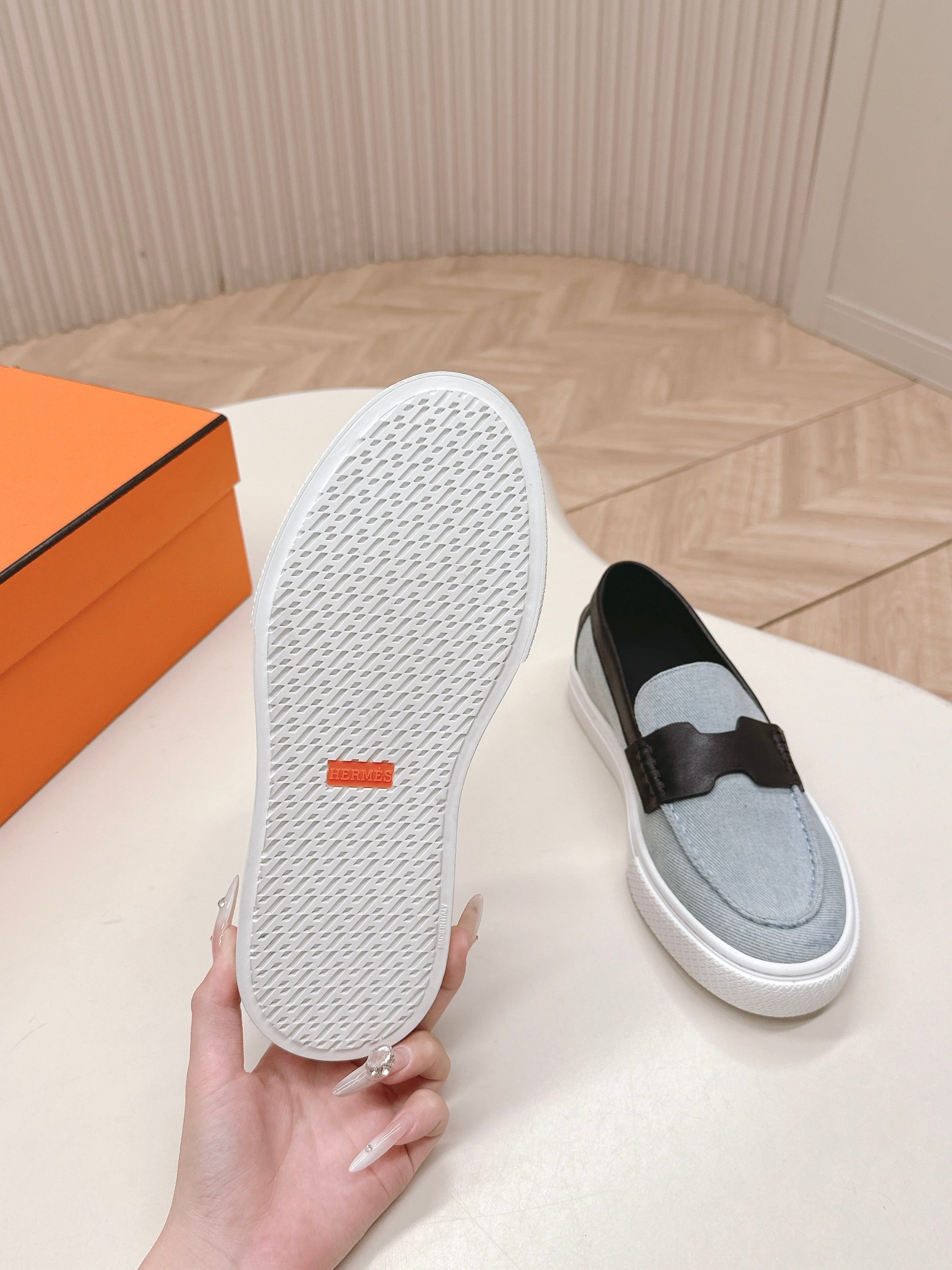 HM 25S SLIP-ON IN BLUE DENIM AND BLACK LAMBSKIN