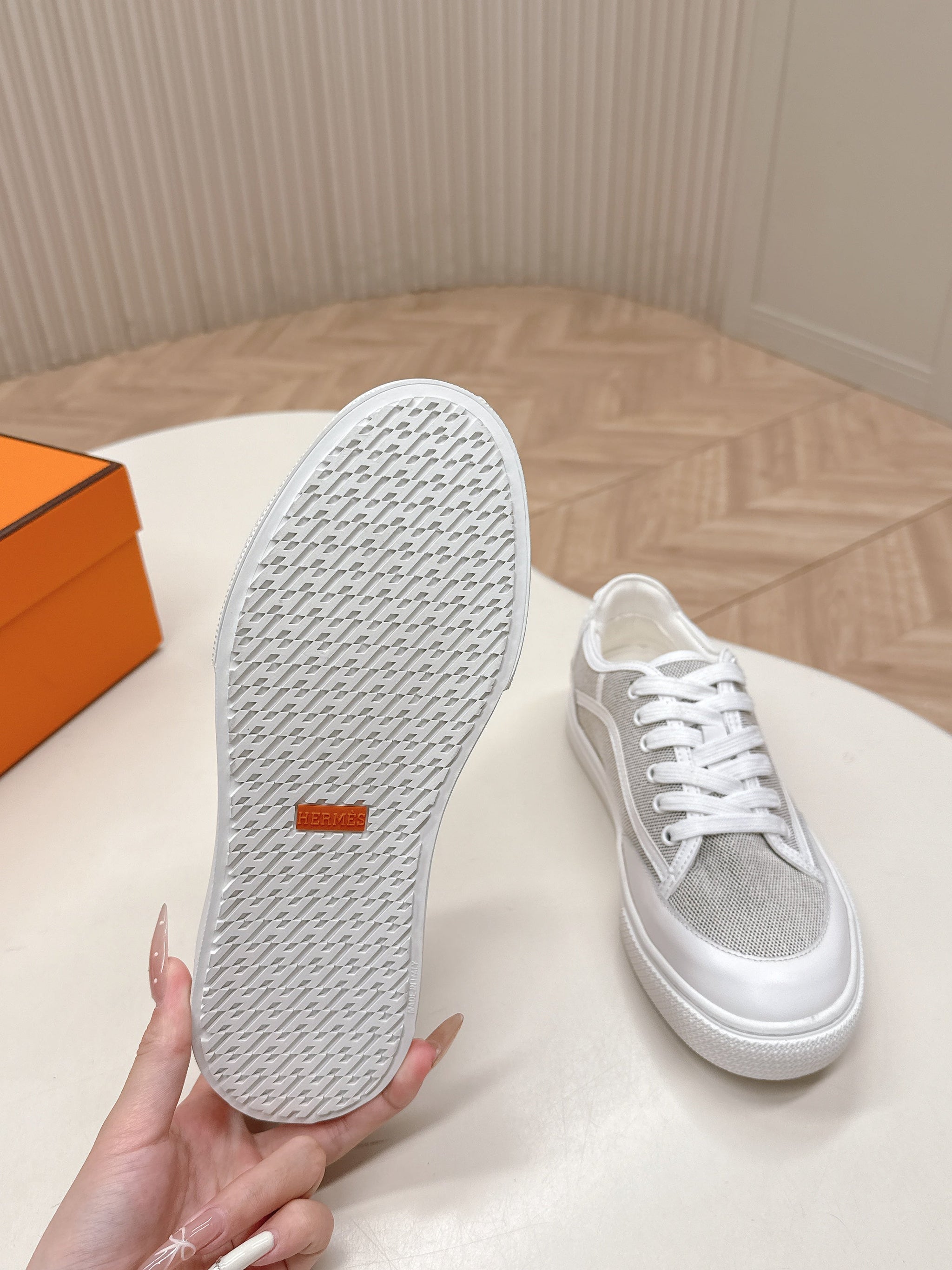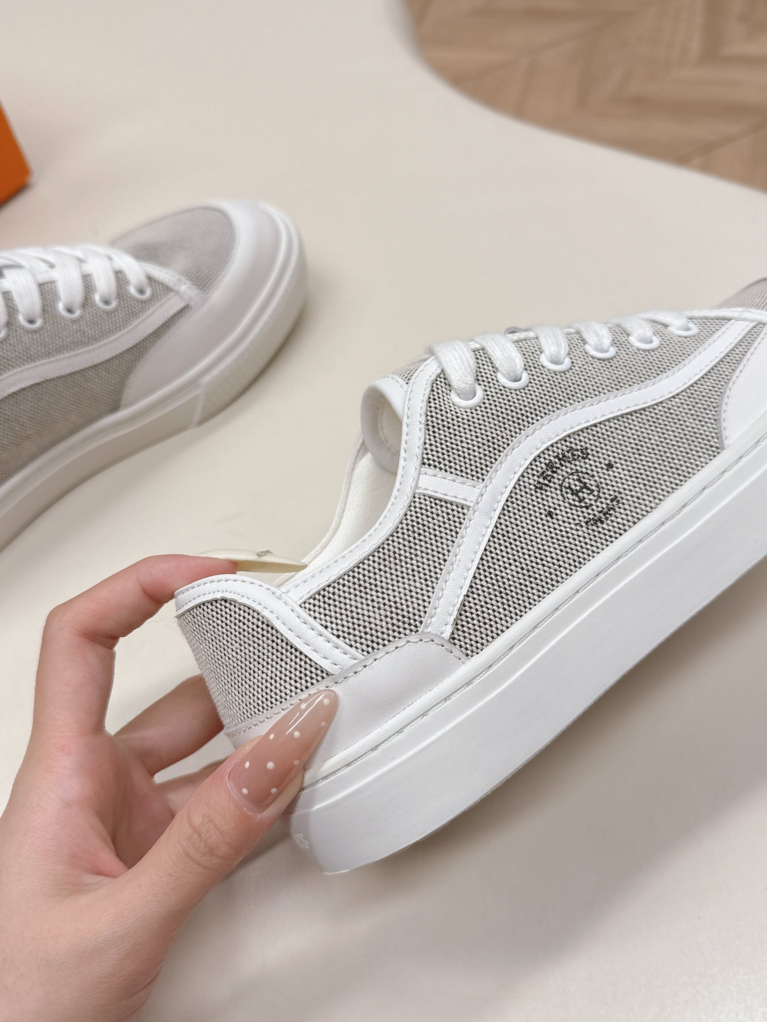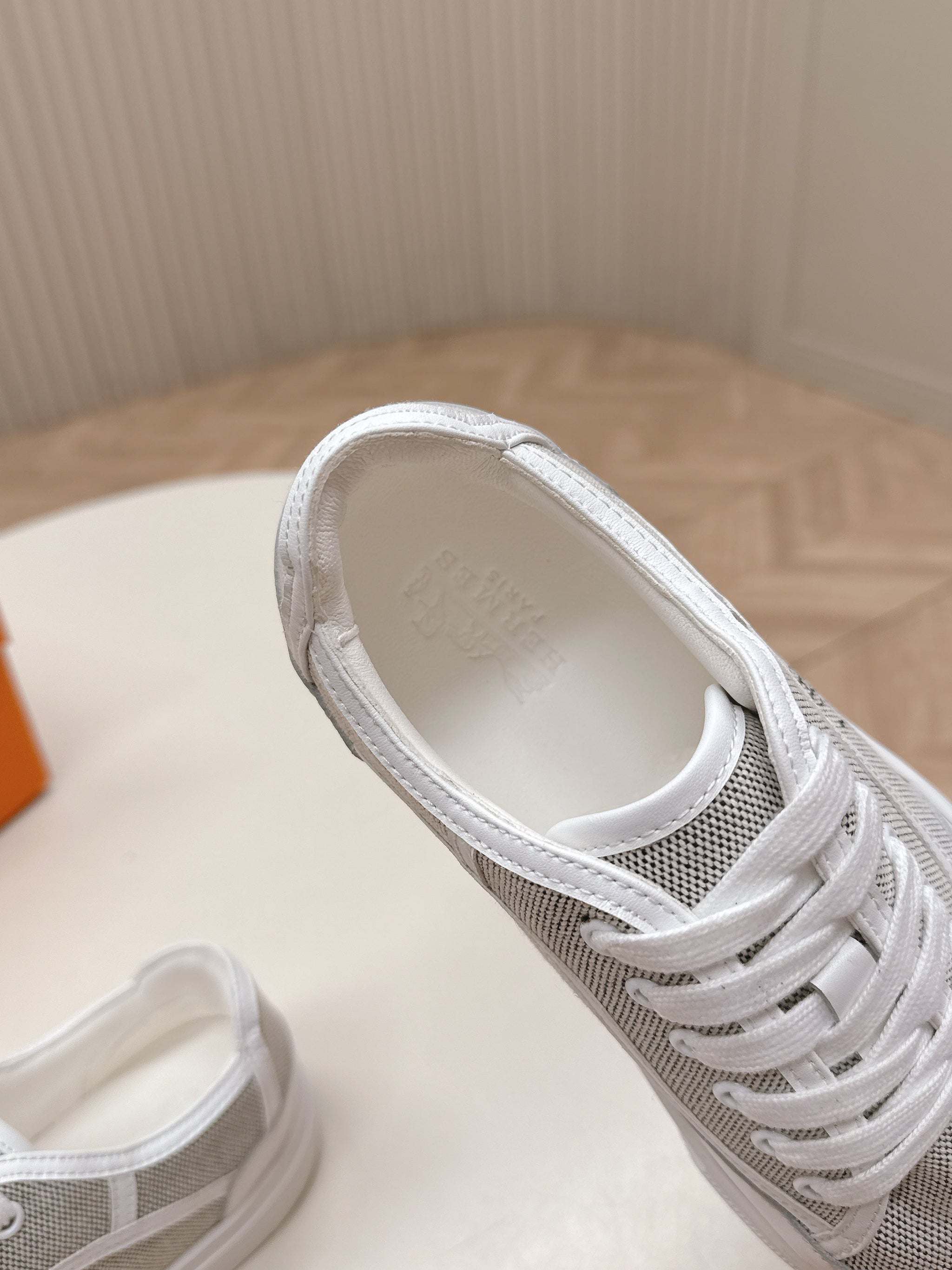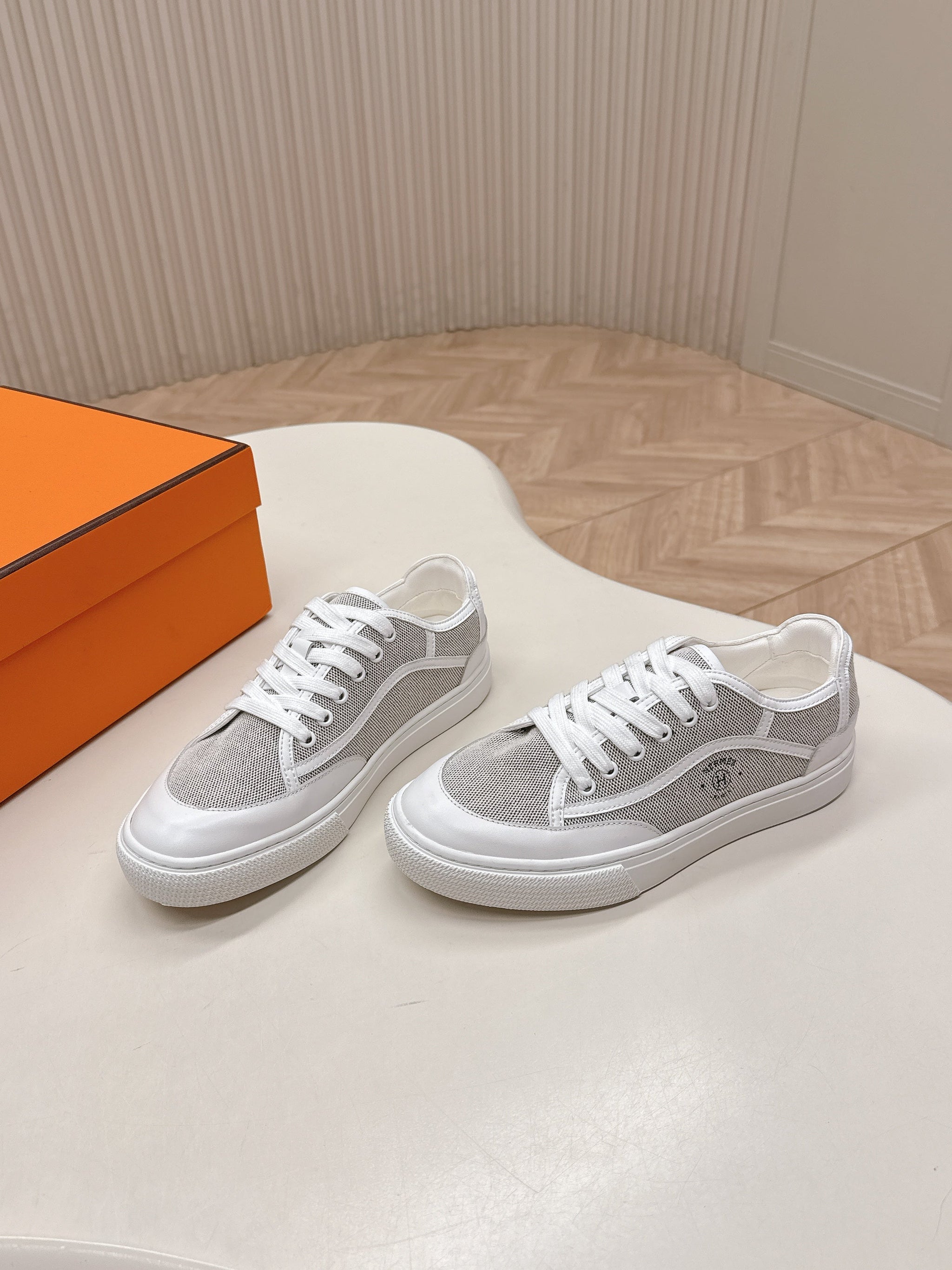 HM 25S SNEAKER LOW SPORTS IN GREY CANVAS MIX WHITE LAMBSKIN