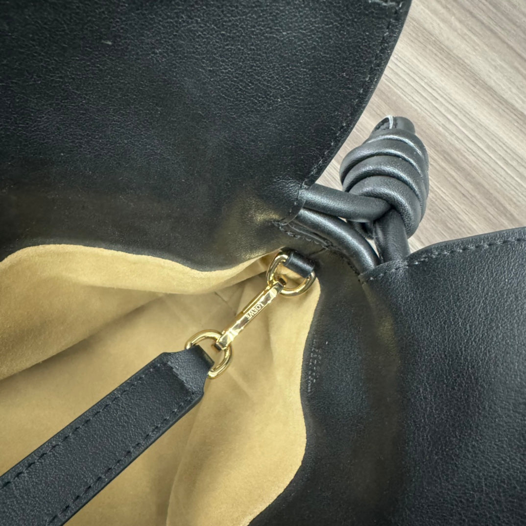 LOEWE 25S LARGE FLAMENCO CLUTCH BAG 30 IN BLACK CALFSKIN