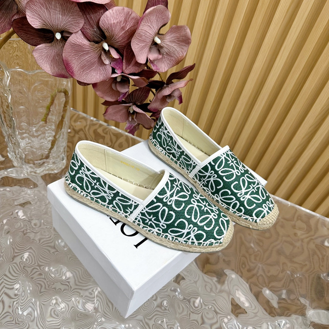 LW WHITE ANAGRAM ESPADRILLE LOAFER GREEN LINEN
