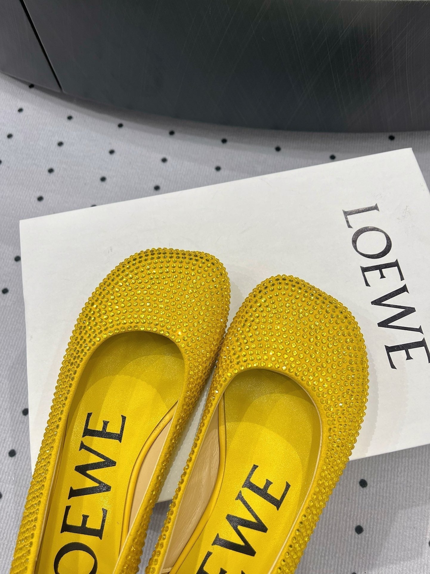 Toy ballerina in suede and allover rhinestones yellow