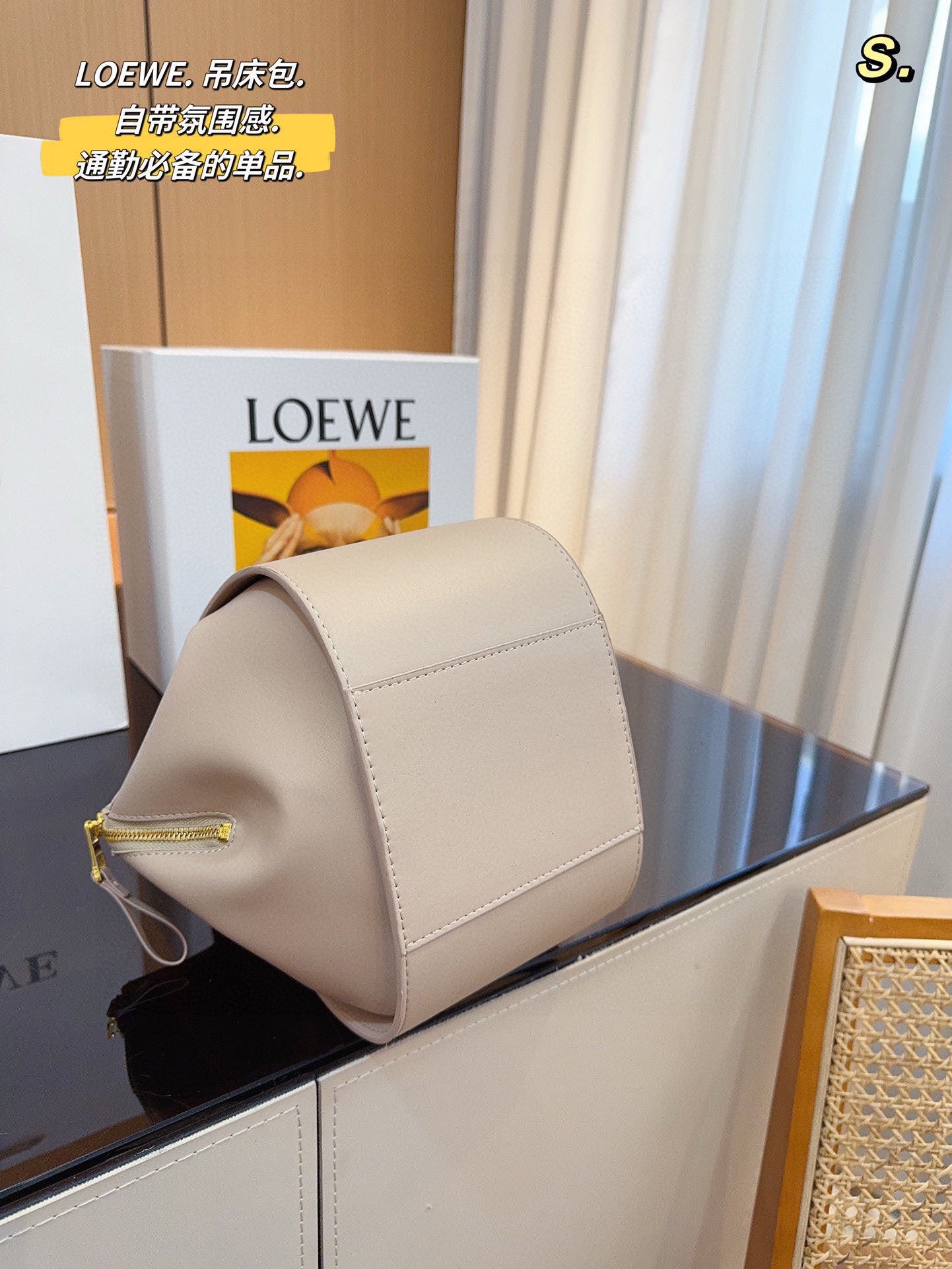 LOE 23 COMPACT HAMMOCK BAG IN SAND SATIN CALFSKIN